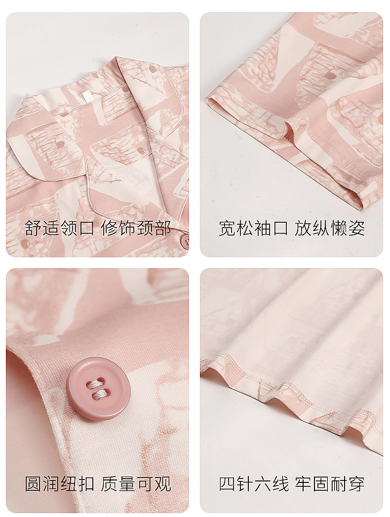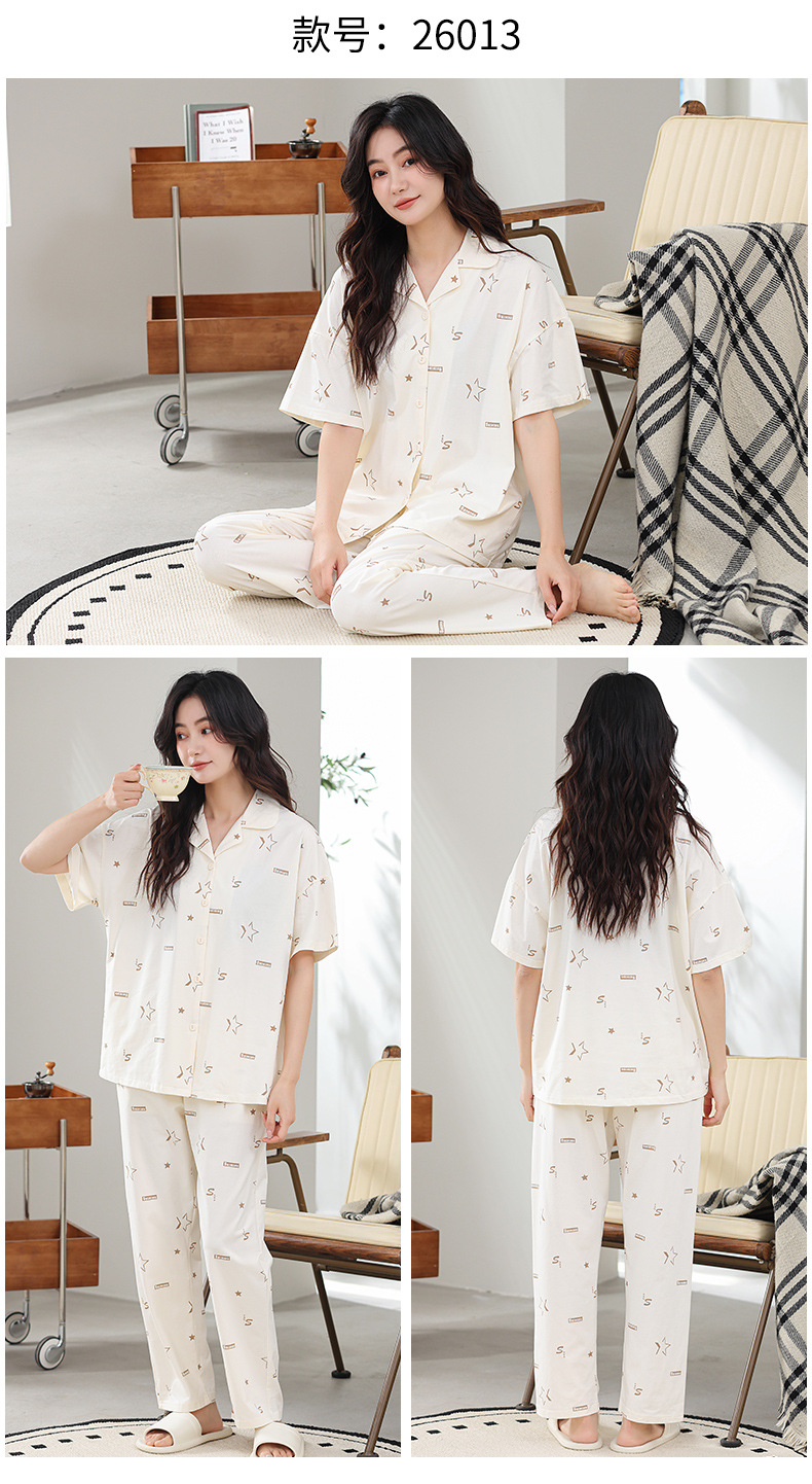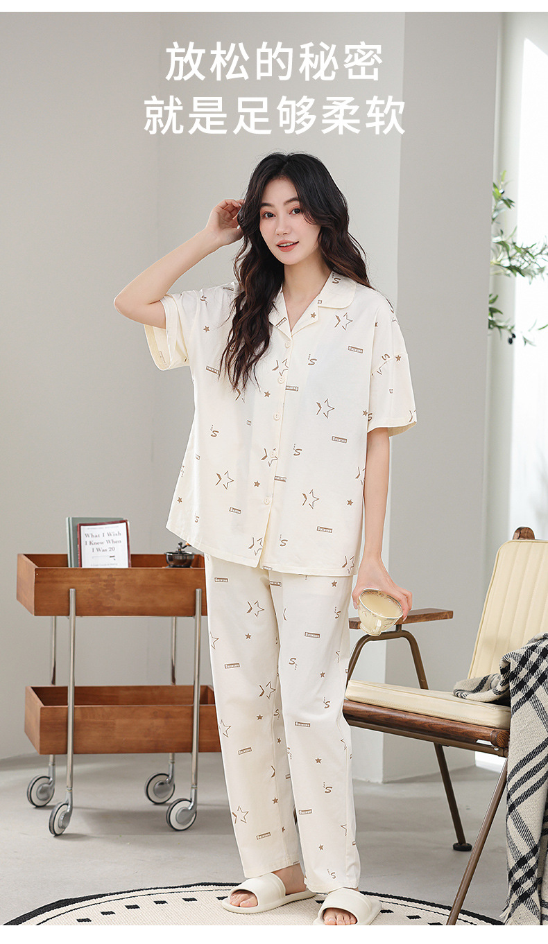 [7a 항균 진드기 제거] 반팔 바지 잠옷 여성 여름 면 카디건 얇은 캐주얼 아웃웨어 홈 의류 세트스토어 가기