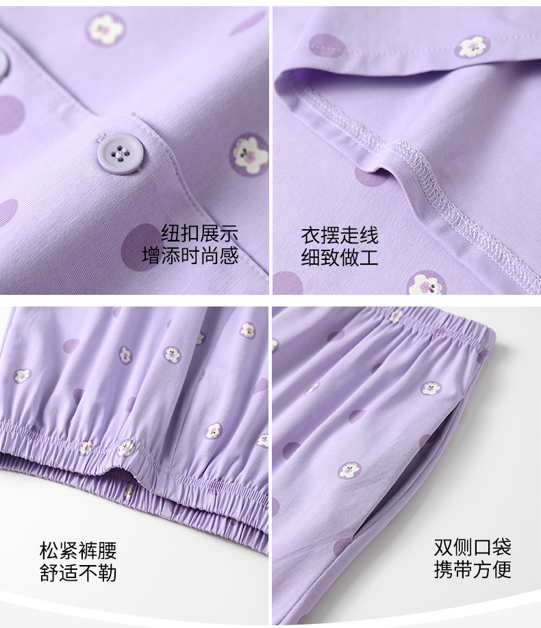 [7a 항균 진드기 제거] 반팔 바지 잠옷 여성 여름 면 카디건 얇은 캐주얼 아웃웨어 홈 의류 세트