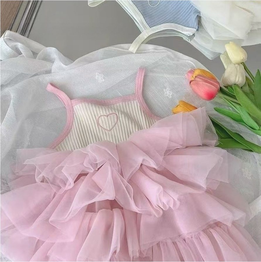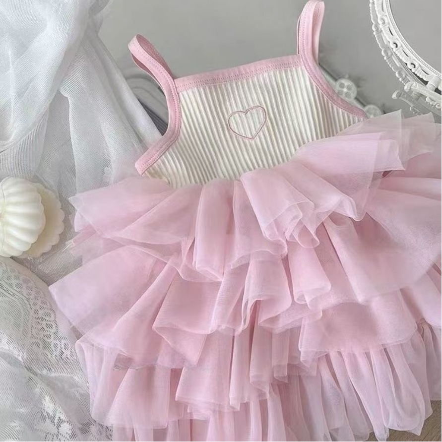 소녀 아동복 슬링 원피스 여름 2025 새로운 아기 스타일 케이크 스커트 아기 공주 스커트
