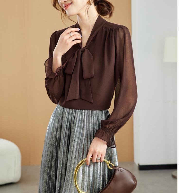 2024 초기 가을 새로운 스타일 전문 통근 리본 활 셔츠 우아한 빛 성숙한 우아한 프랑스 쉬폰 탑스토어 가기