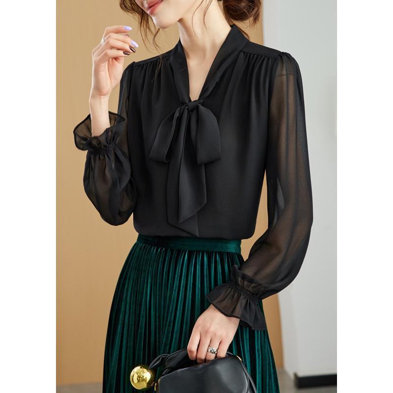 2024 초기 가을 새로운 스타일 전문 통근 리본 활 셔츠 우아한 빛 성숙한 우아한 프랑스 쉬폰 탑