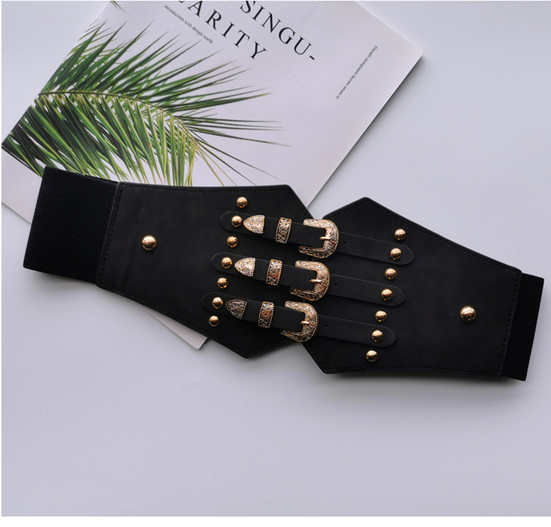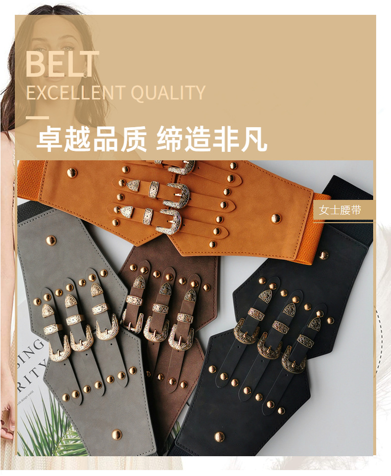 유럽과 미국의 법원 클래식 여성 탄성 허리 씰 여성 패션 통근 여성 탄성 와이드 허리 씰 여성 원피스스토어 가기