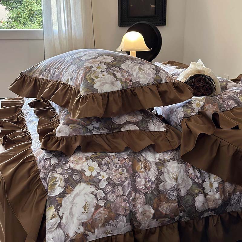 프랑스 100 긴 스테이플 코튼 침대 4 피스 코튼 침대 시트 빈티지 레이스 퀼트 커버