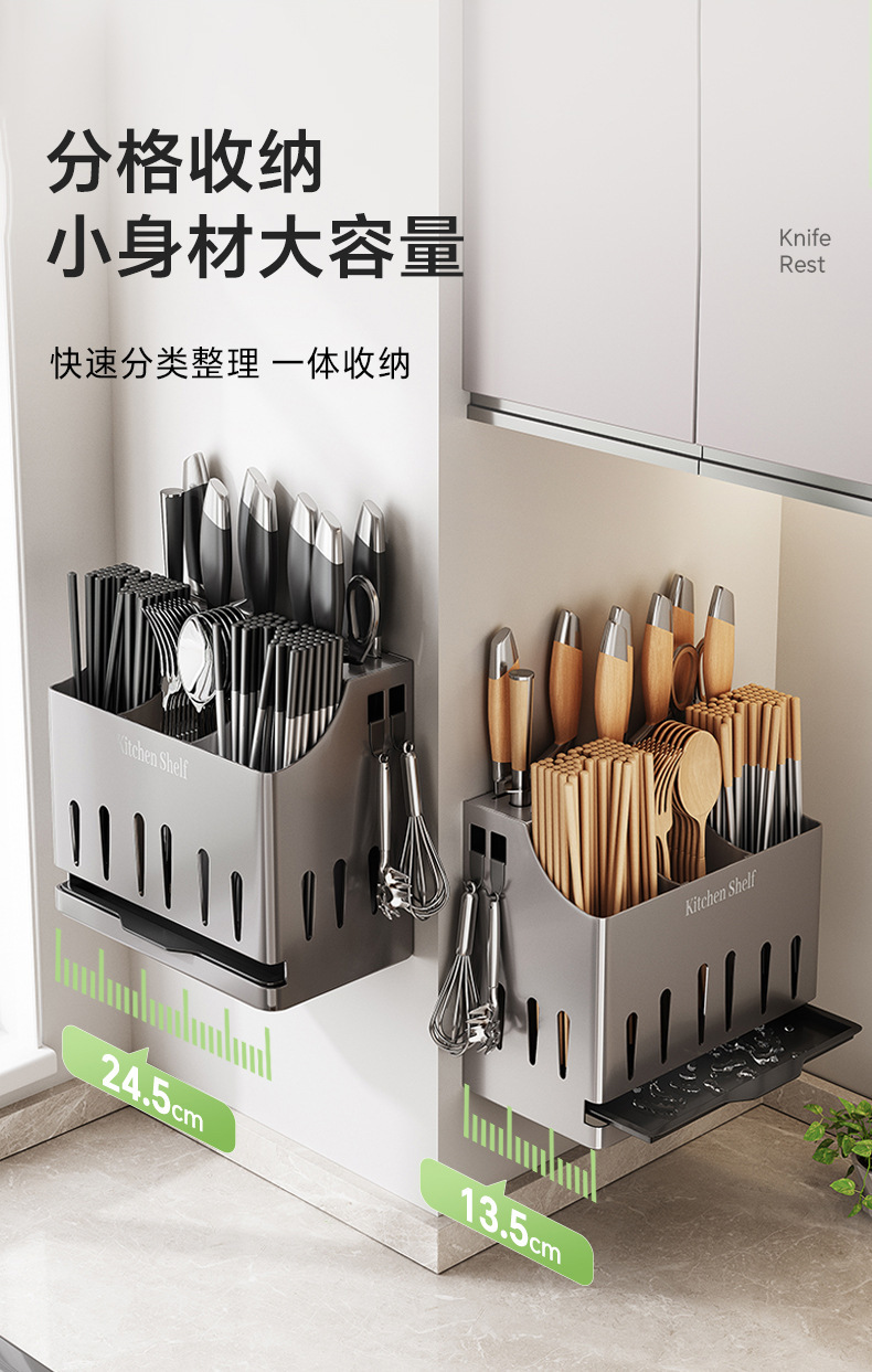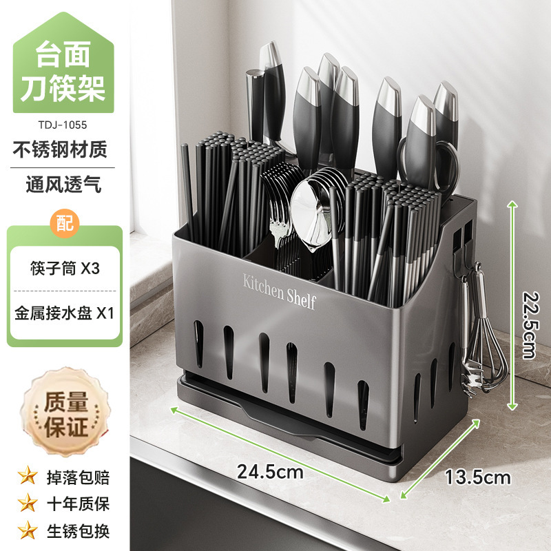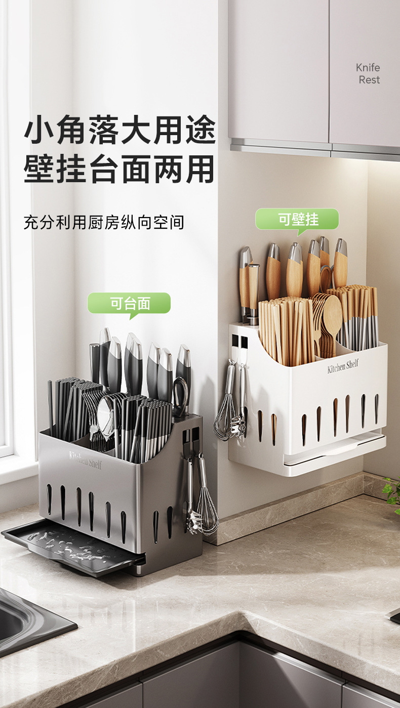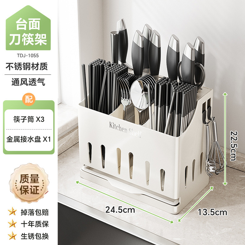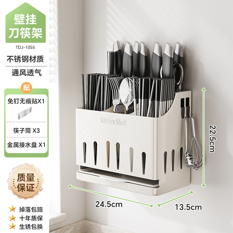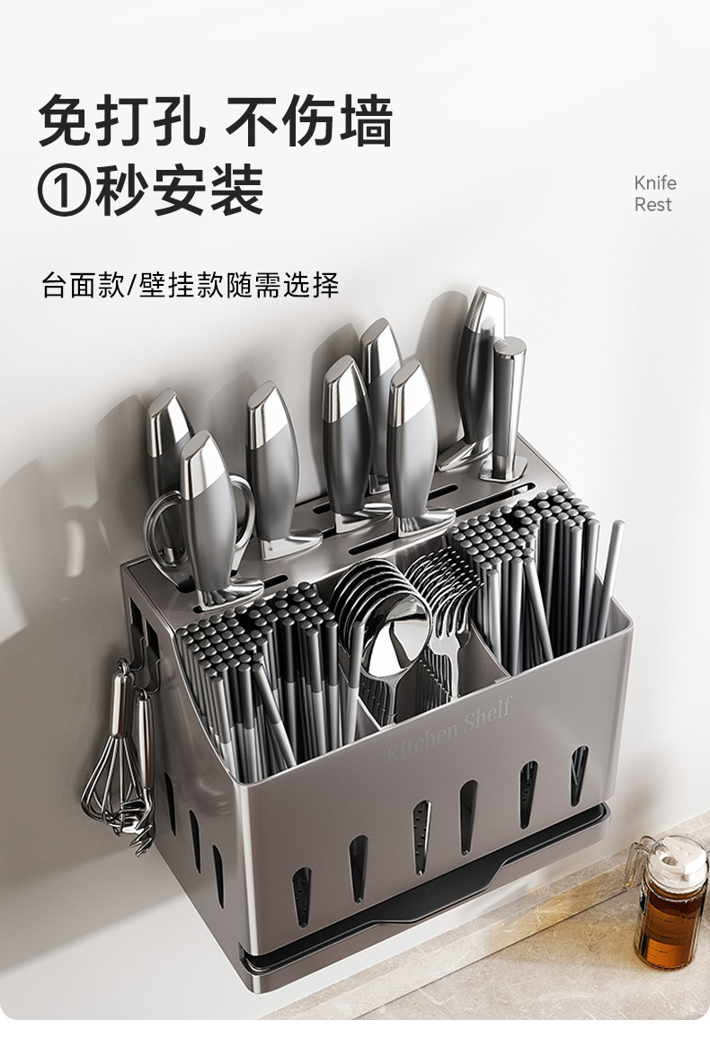스테인레스 스틸 주방 나이프 홀더 젓가락 저장 튜브 벽걸이 다기능 스토리지 랙 식기 나이프 배수 통합