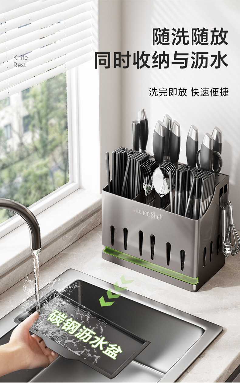 스테인레스 스틸 주방 나이프 홀더 젓가락 저장 튜브 벽걸이 다기능 스토리지 랙 식기 나이프 배수 통합스토어 가기