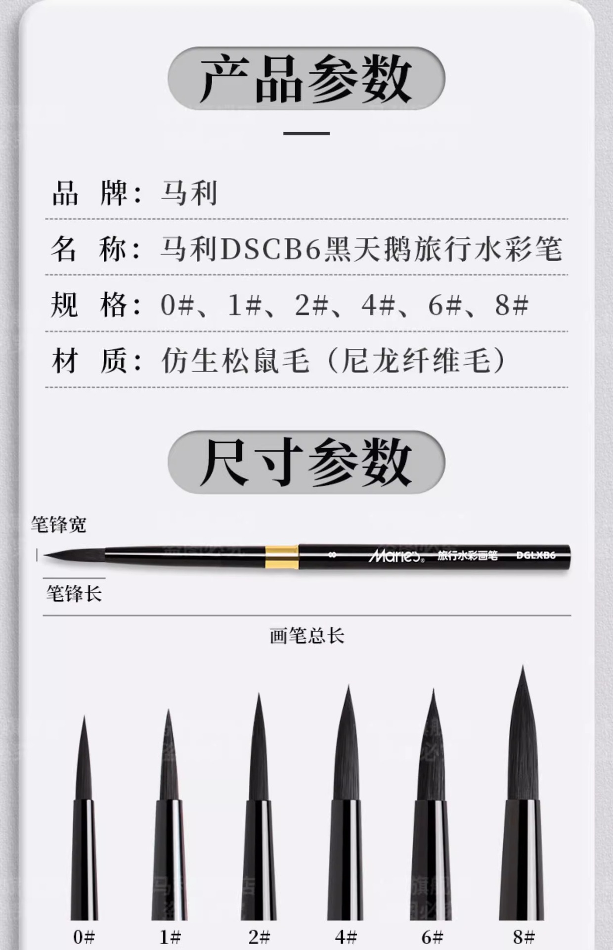 Marley Black Swan 수채화 브러시 여행 브러시 휴대용 디지털 오일 브러시 Goulien 브러시 나일론 브러시 크로스 테두리