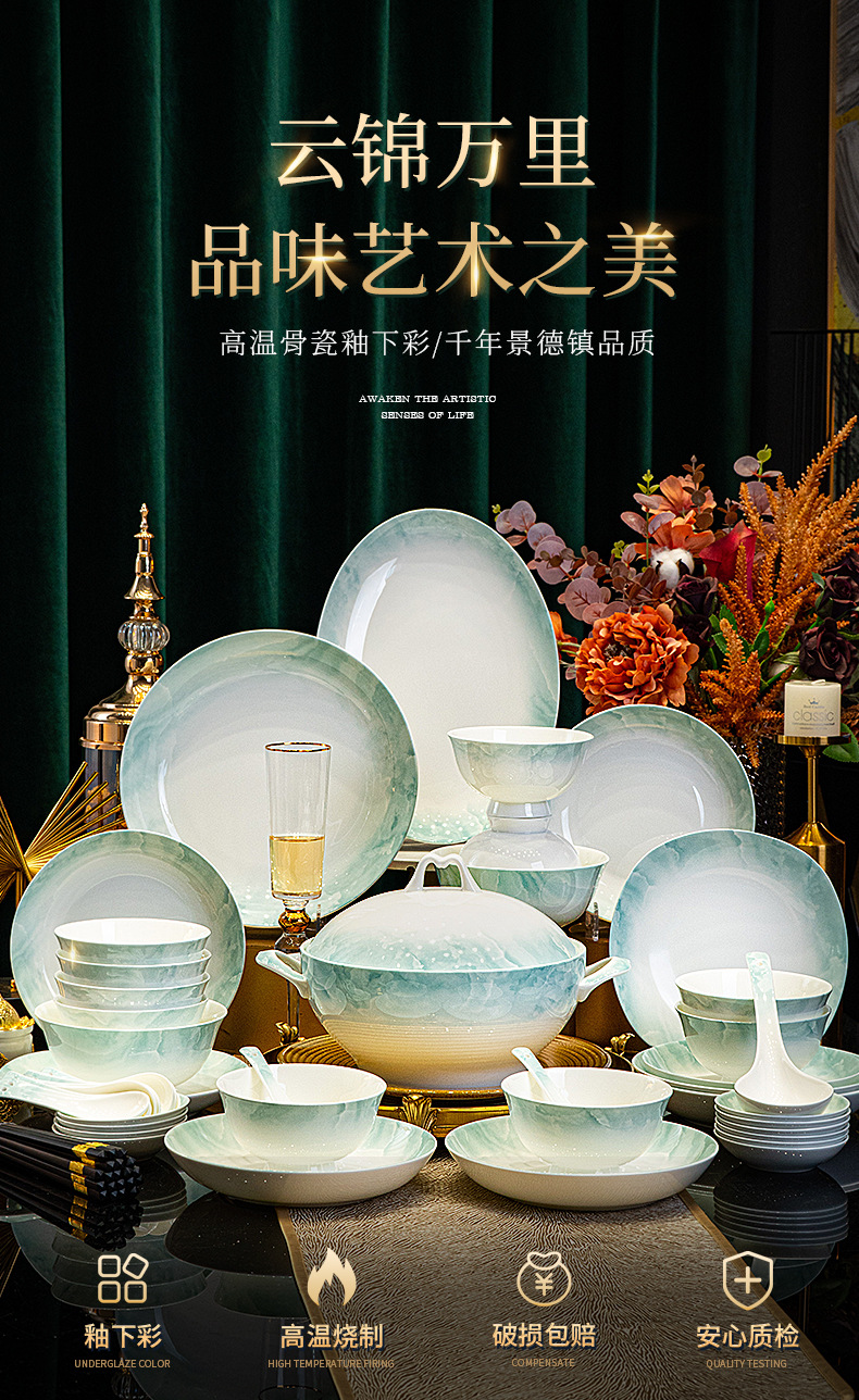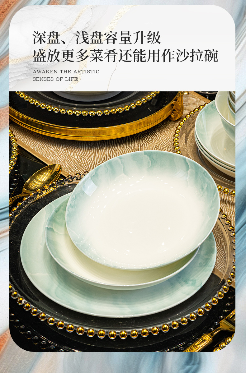 탕산 접시 가정용 접시 2025 신형 중국식 고온 뼈도자기 식기 세라믹 접시 식기류 깊은 접시 밥 접시스토어 가기