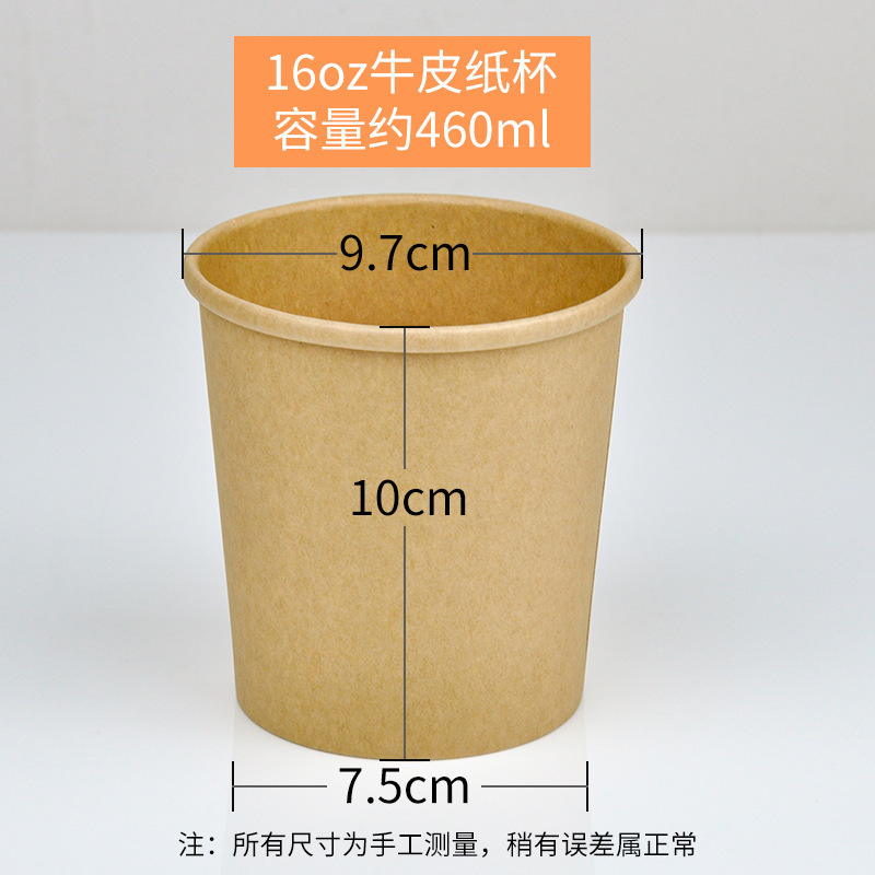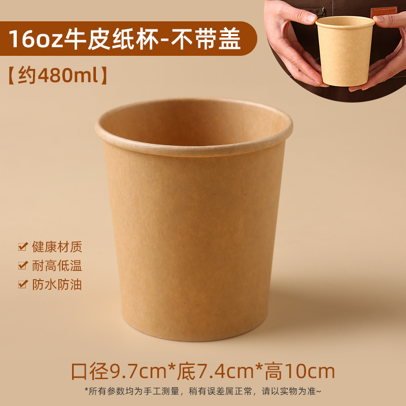 • 뚜껑 없는 16온스 크라프트 종이컵, 100개, 약 460ml