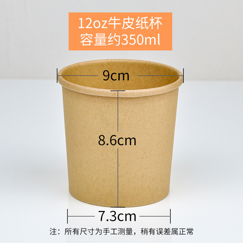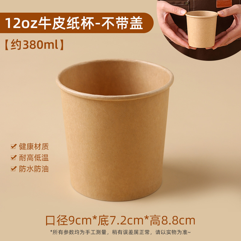 • 뚜껑 없는 12온스 크라프트 종이컵, 100개, 약 350ml