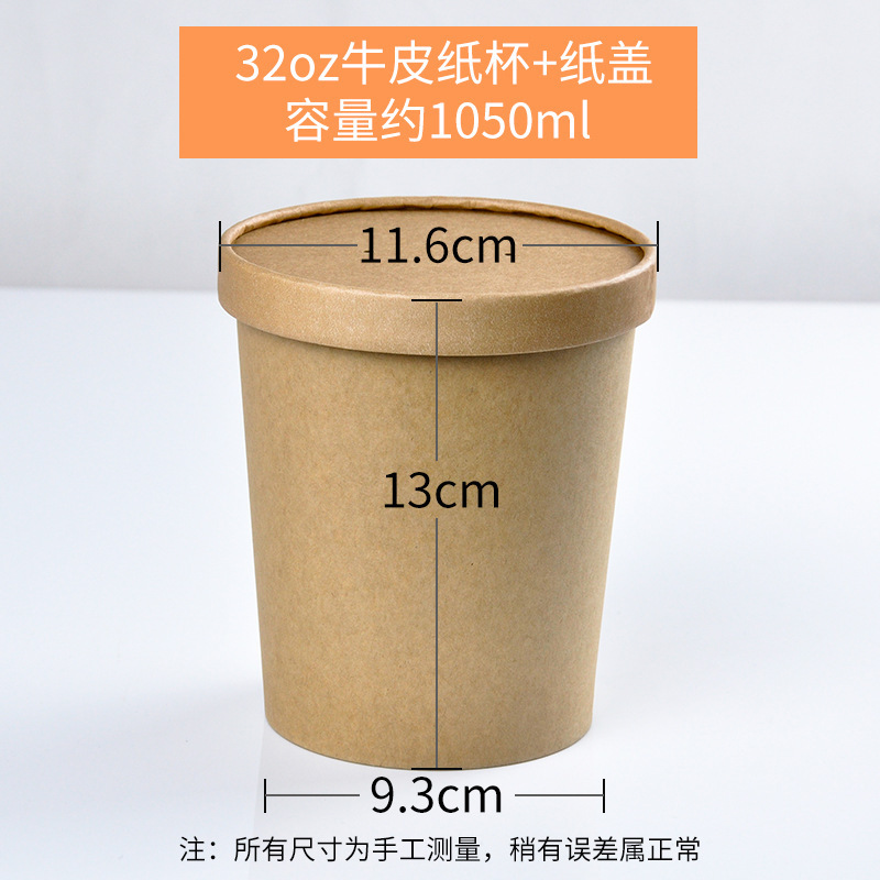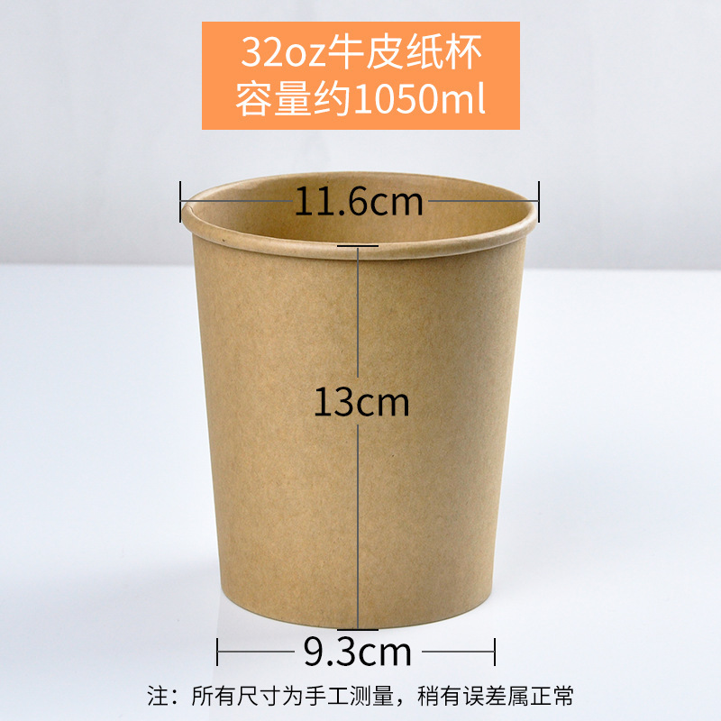 • 뚜껑 없는 32온스 크라프트 종이컵, 100개, 약 1050ml