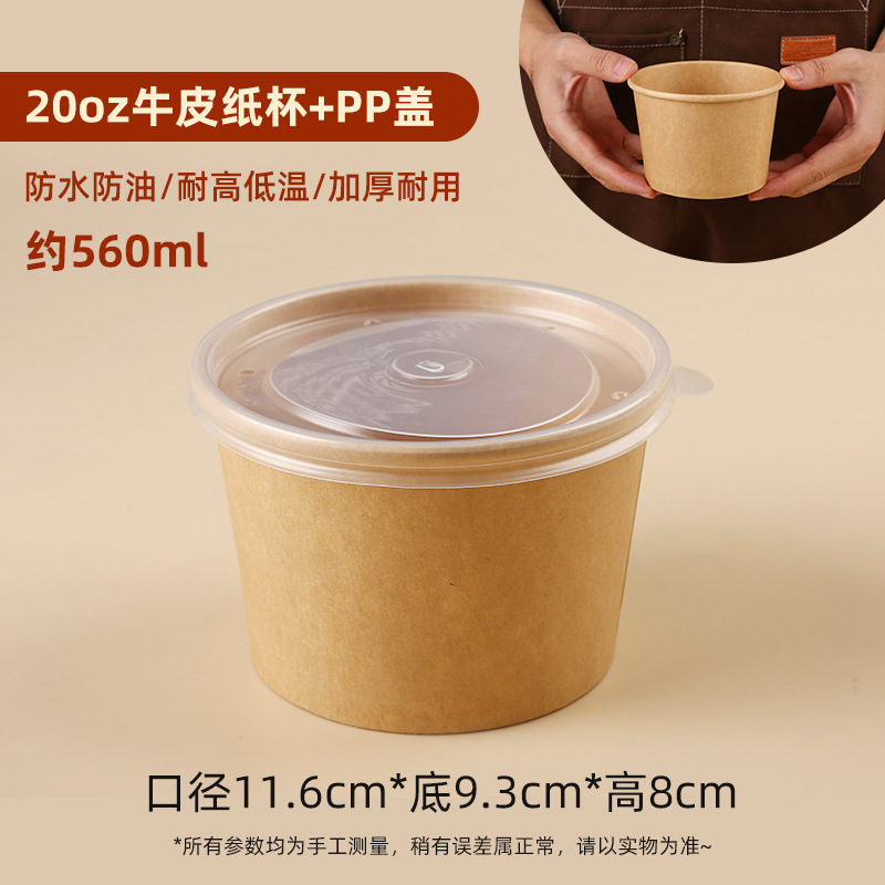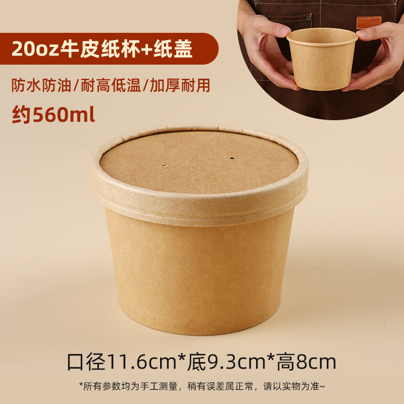 • 20OZ 크라프트 종이컵 + 종이뚜껑 100세트, 약 540ml