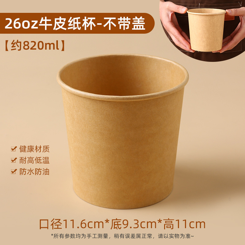 • 뚜껑 없는 26온스 크라프트 종이컵, 100개, 약 780ml
