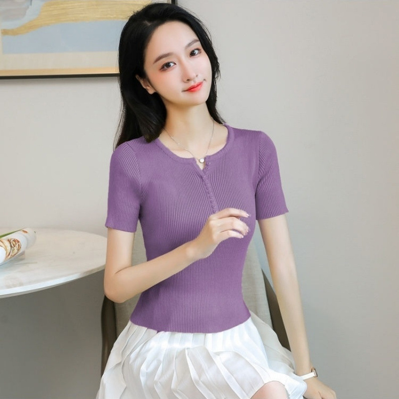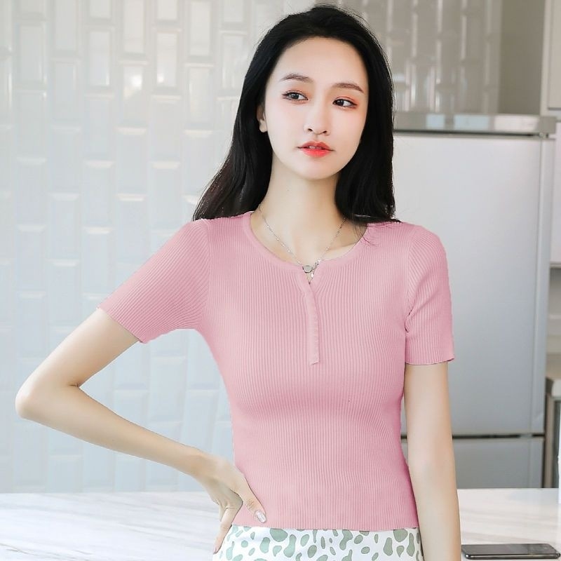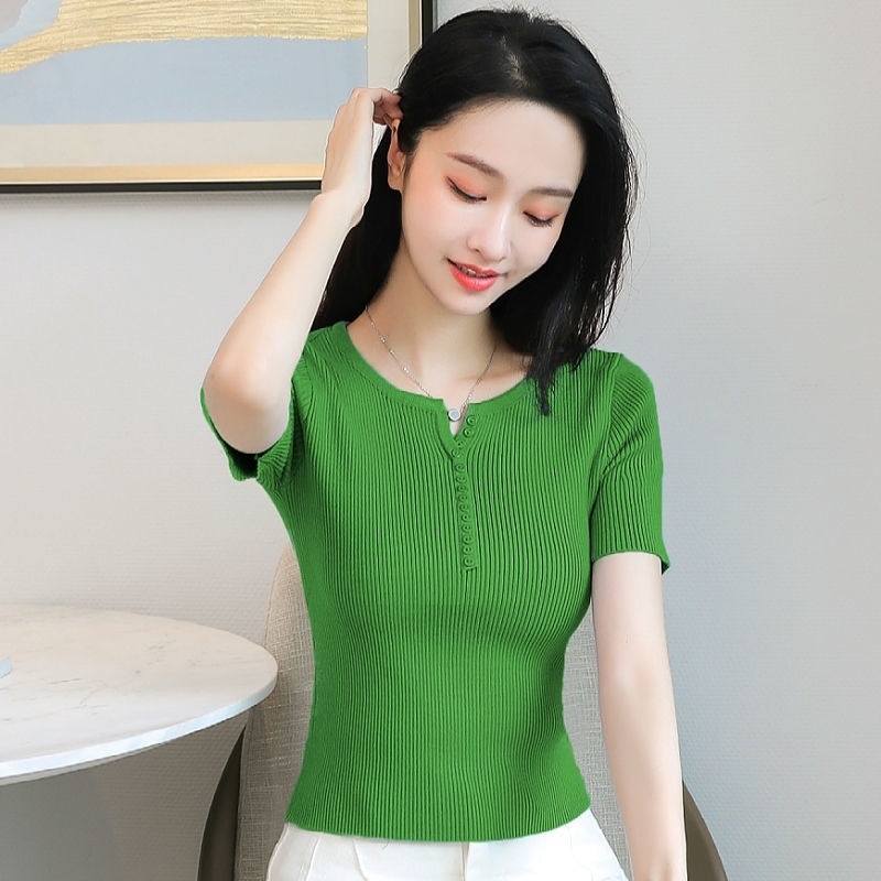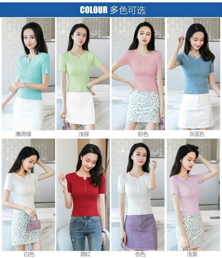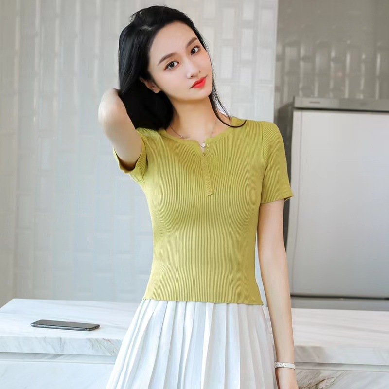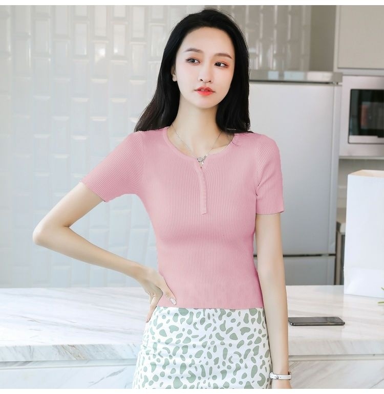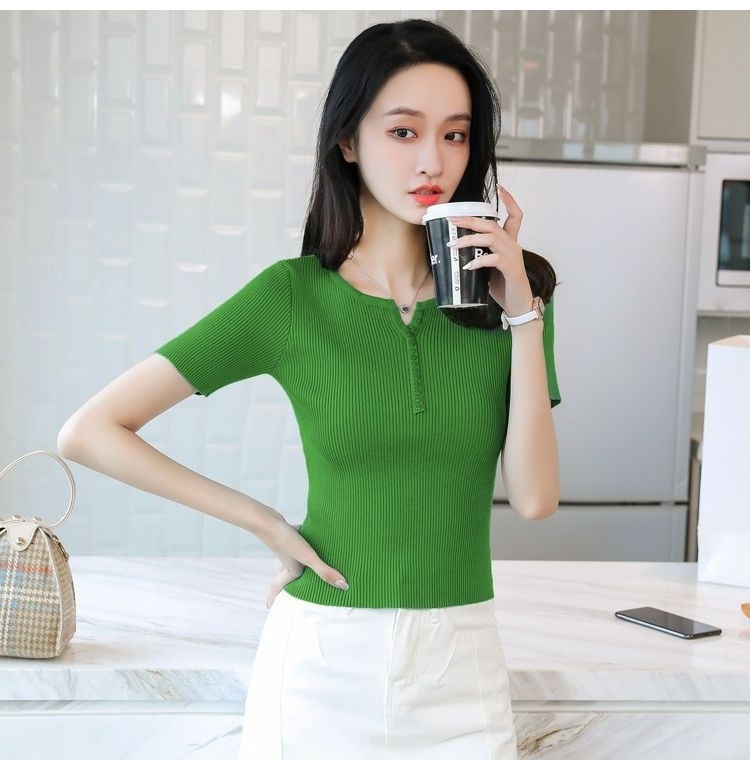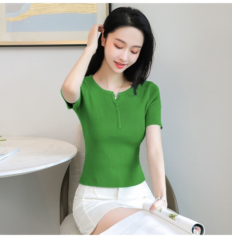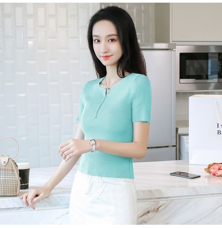 외국식 하프 오픈 가슴 니트 탑 여자 얇은 슈퍼 핫 ins2023 여름 올 매치 짧은 아이스 실크 티셔츠 셔츠스토어 가기