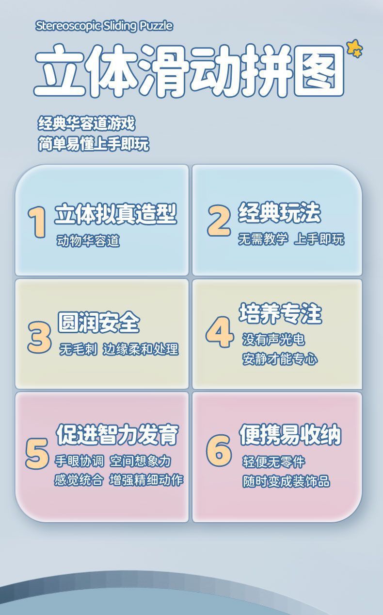 Huarong Road 만화 3D 슬라이딩 퍼즐 보드 어린이 교육 Jiugongge 장난감 초등학교 논리 공간 사고 훈련스토어 가기