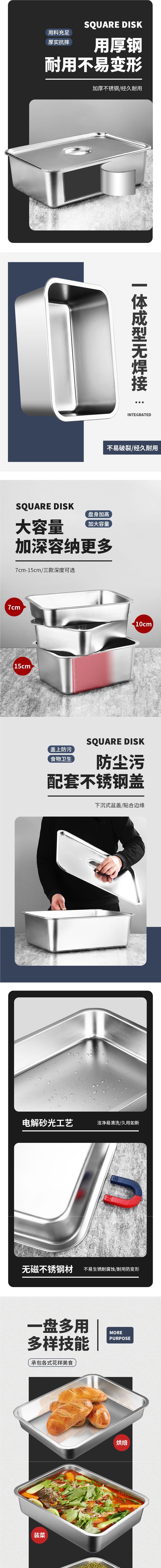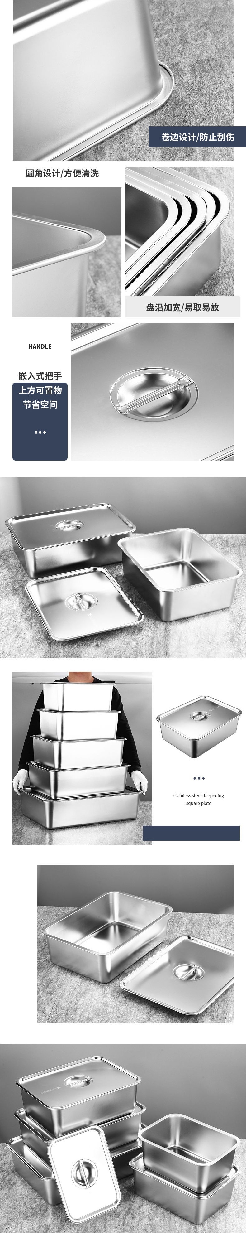 여분의 두꺼운 스테인레스 스틸 플레이트 304 직사각형 두꺼운 가정용 딥 플랫 바닥 트레이 뚜껑 도매 생선 스퀘어 플레이트스토어 가기
