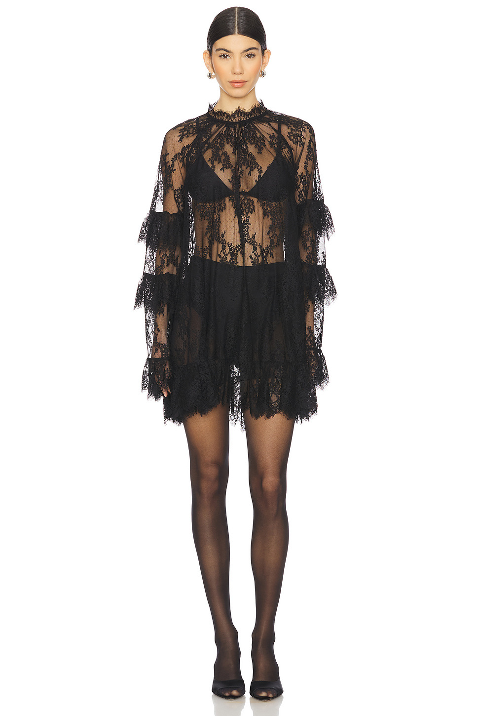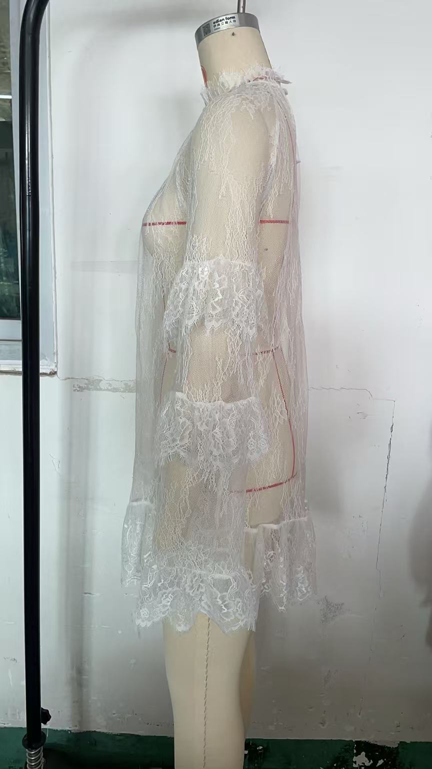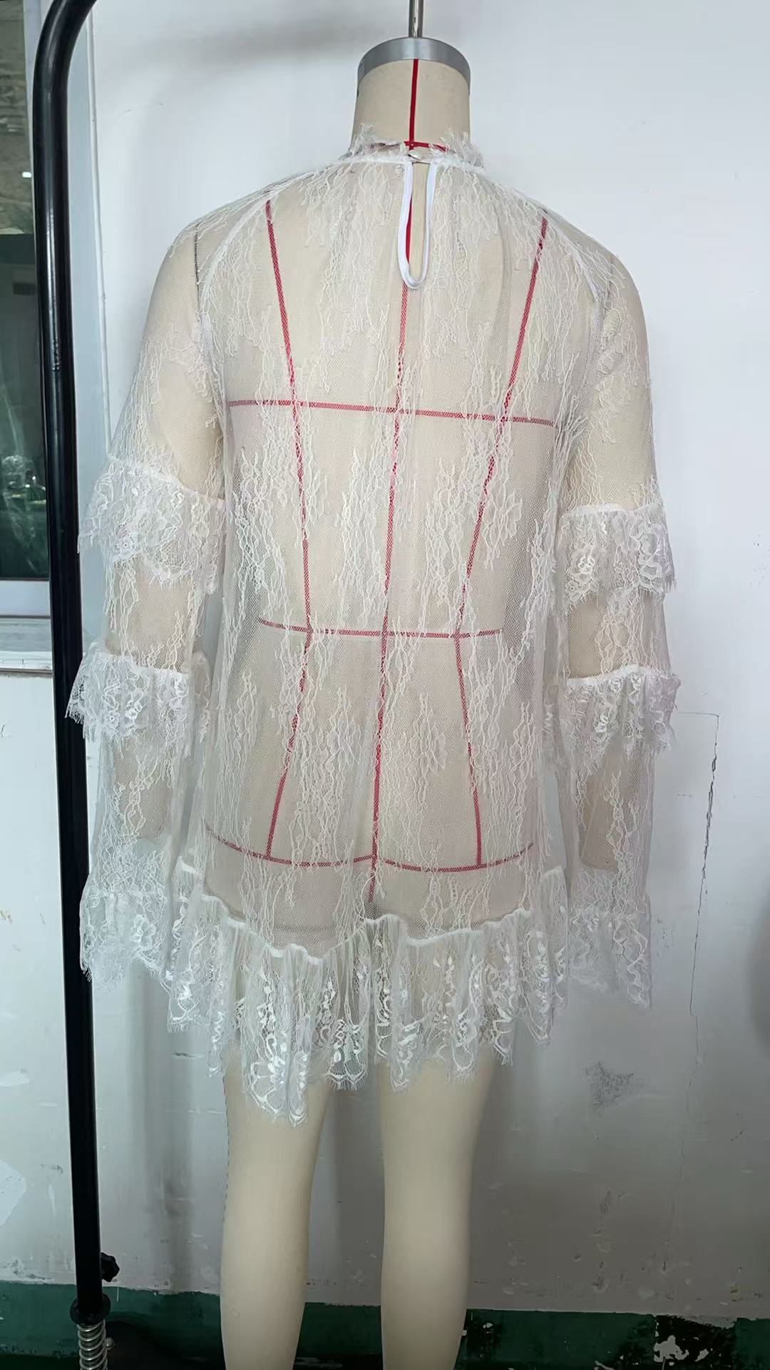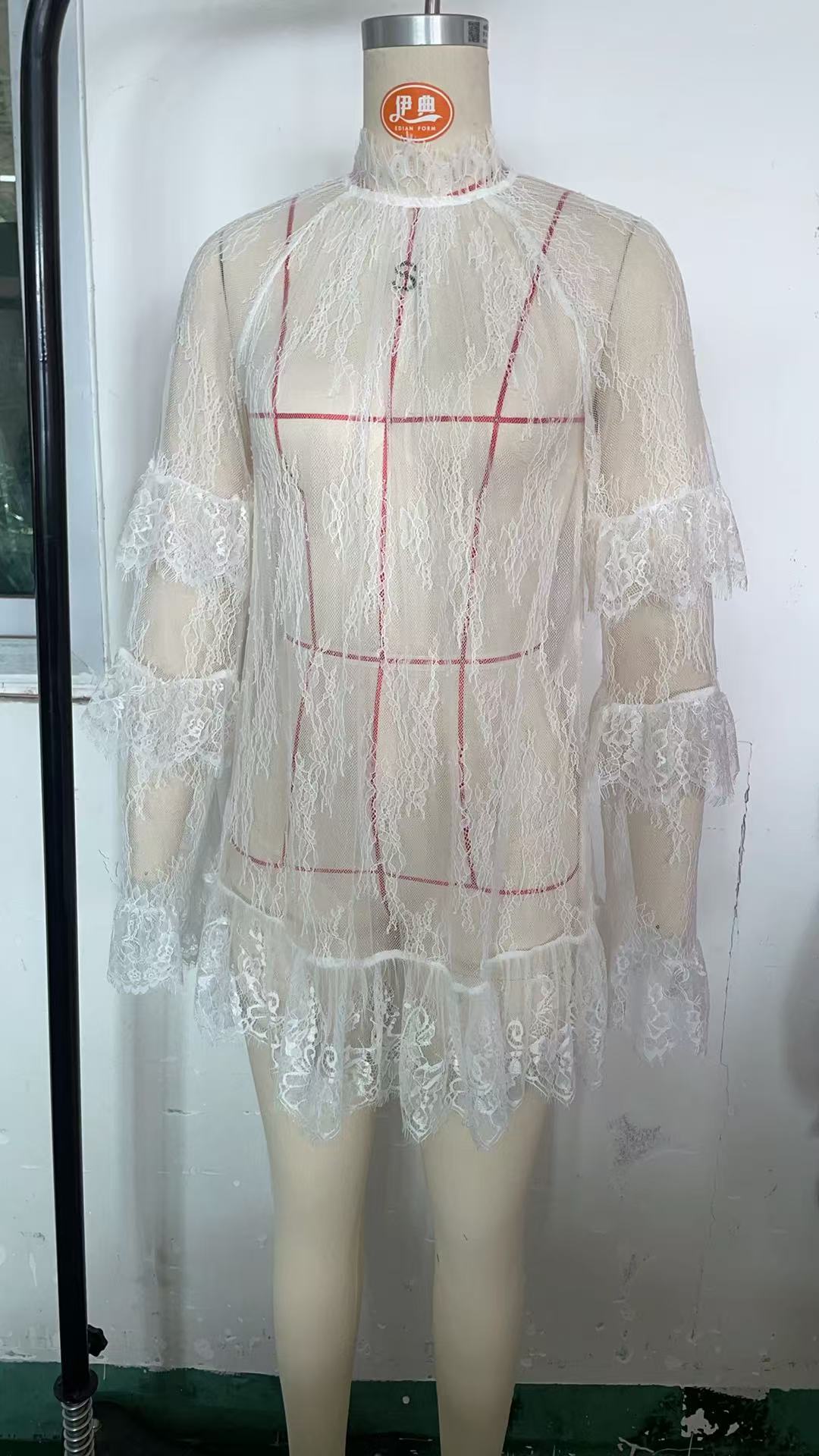 2025 봄과 여름 국경 유럽과 미국의 섹시한 스파이스 소녀 왕실 자매 완전 투명 레이스 원피스 관점 블라우스 원피스
