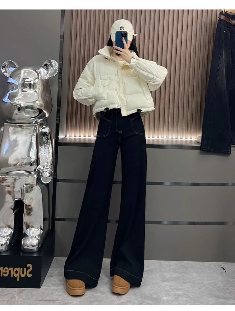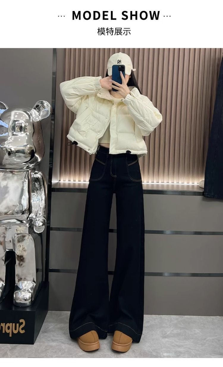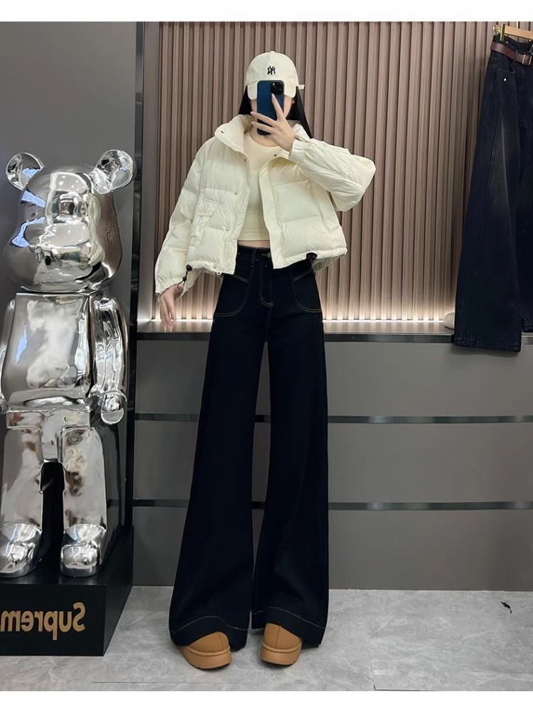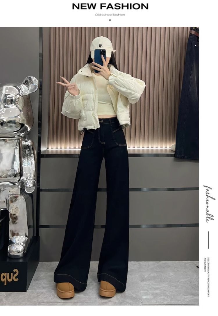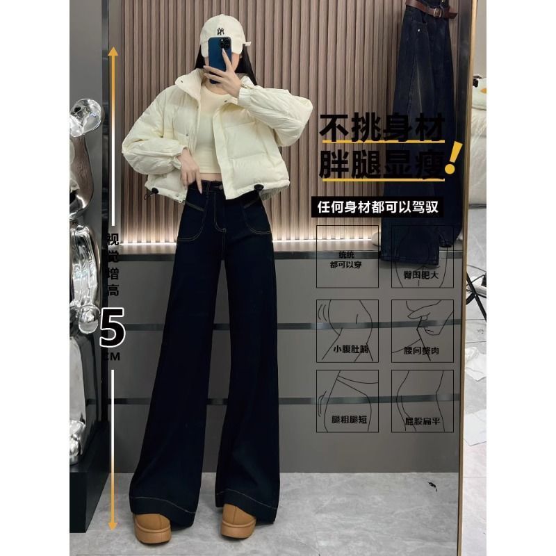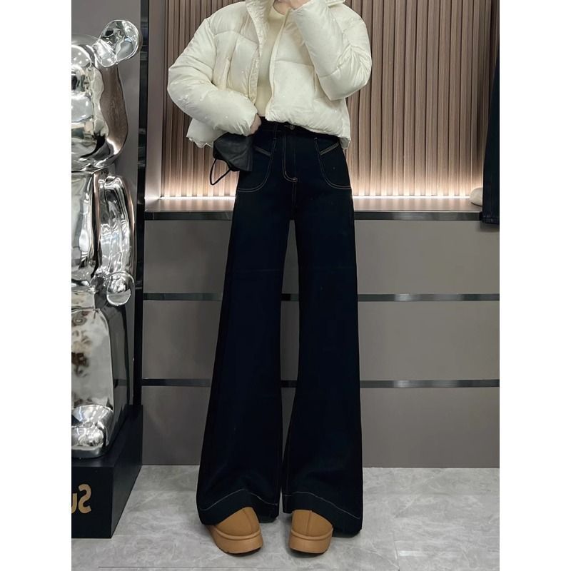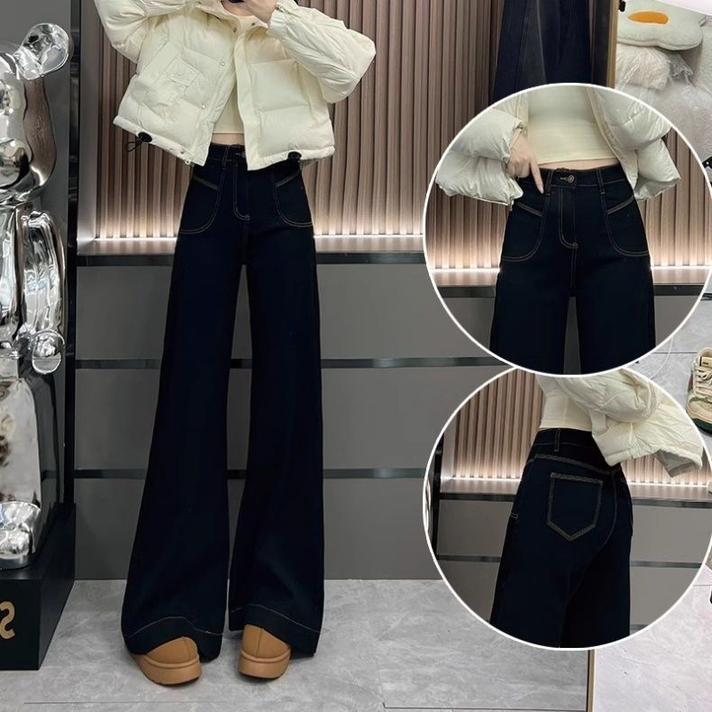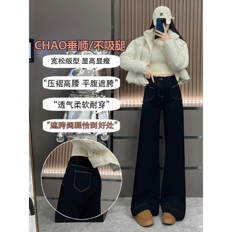 검은 청바지 여성의 봄과 가을 2025 새로운 넓은 다리 플러스 사이즈 느슨한 경적 직선 바지스토어 가기