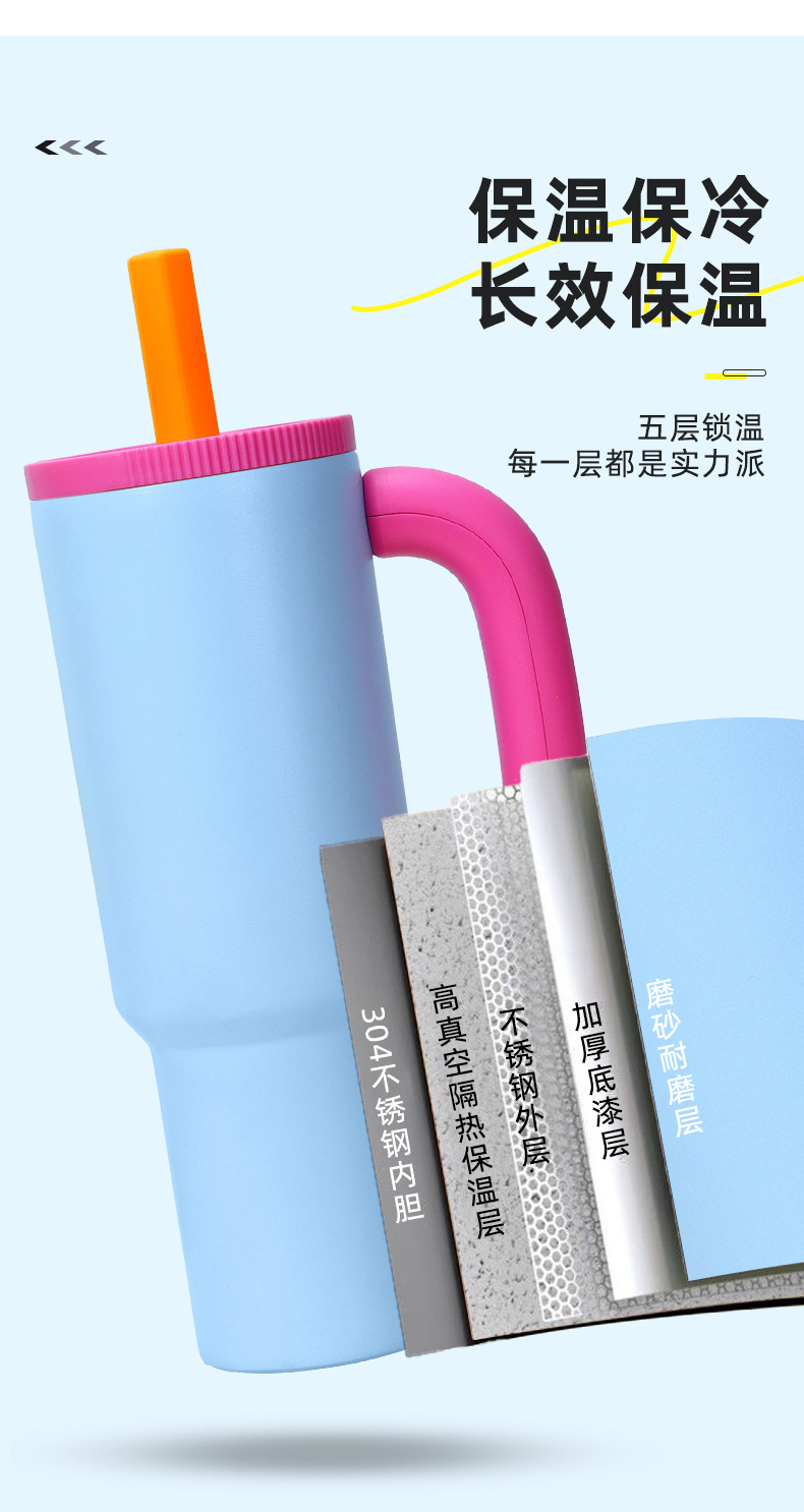 새로운 304 스테인레스 스틸 핸들 자동차 컵 더블 레이어 진공 대용량 절연 컵 야외 휴대용 얼음 컵