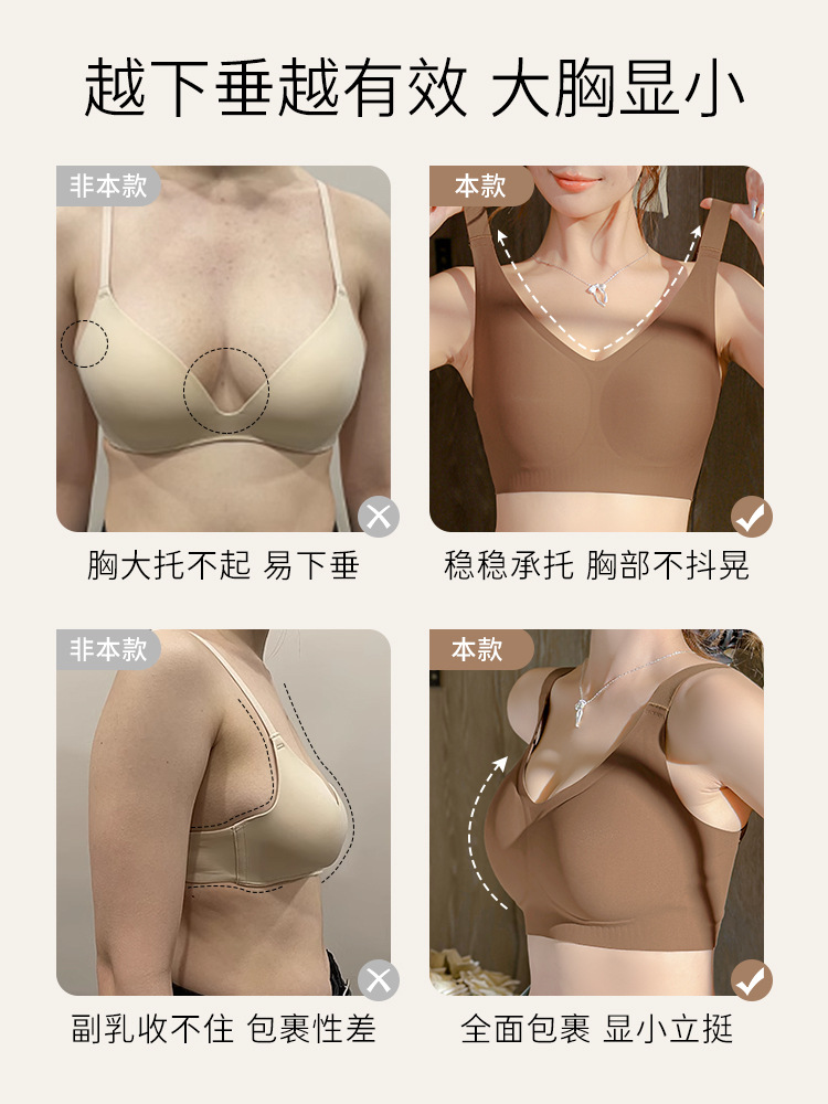 원래 큰 가슴 작은 노 마크 속옷 Parammary 유방 안티 처링 어퍼 브래킷 풀 컵 스틸 반지 스포츠 브라