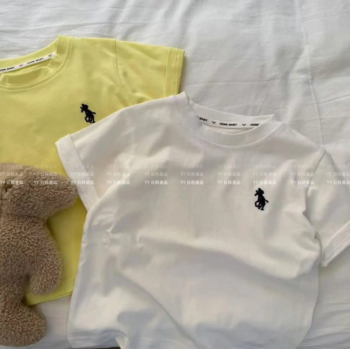 아동용 얇은 반팔 2025 여름 패션 브랜드 조랑말 자수 코튼 베이비 아동용 반팔 탑스토어 가기