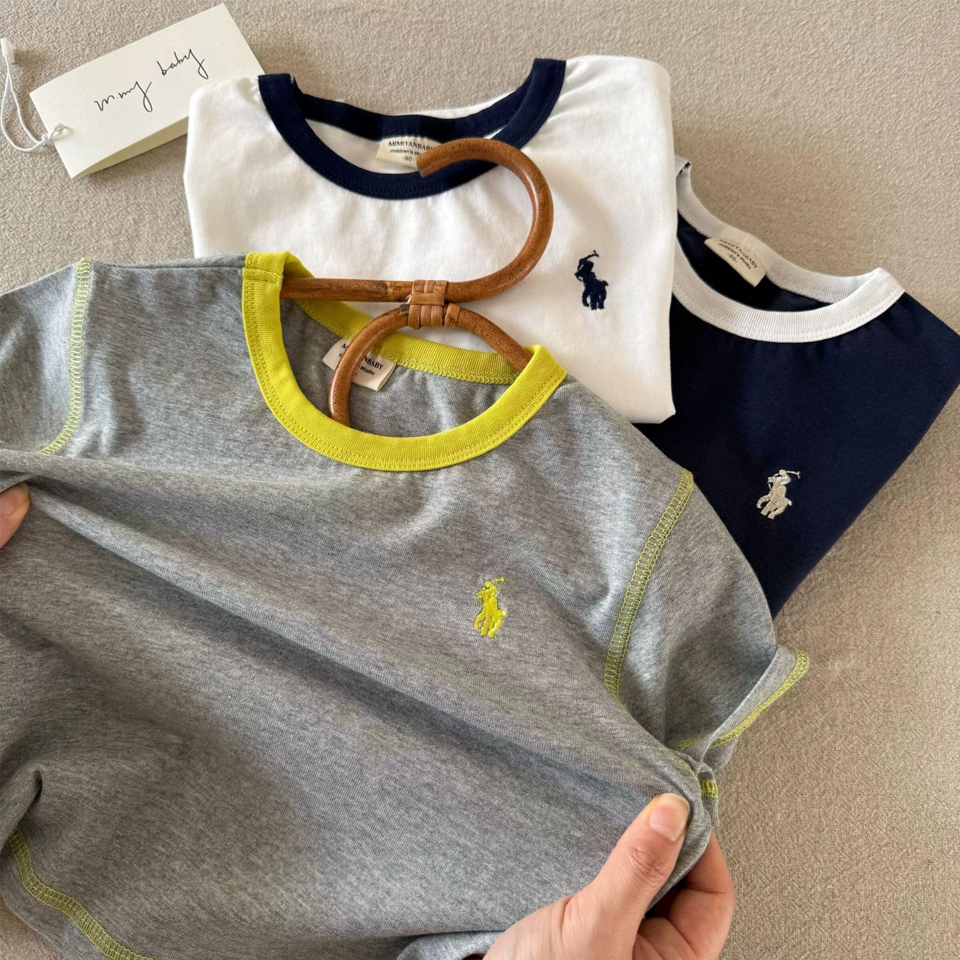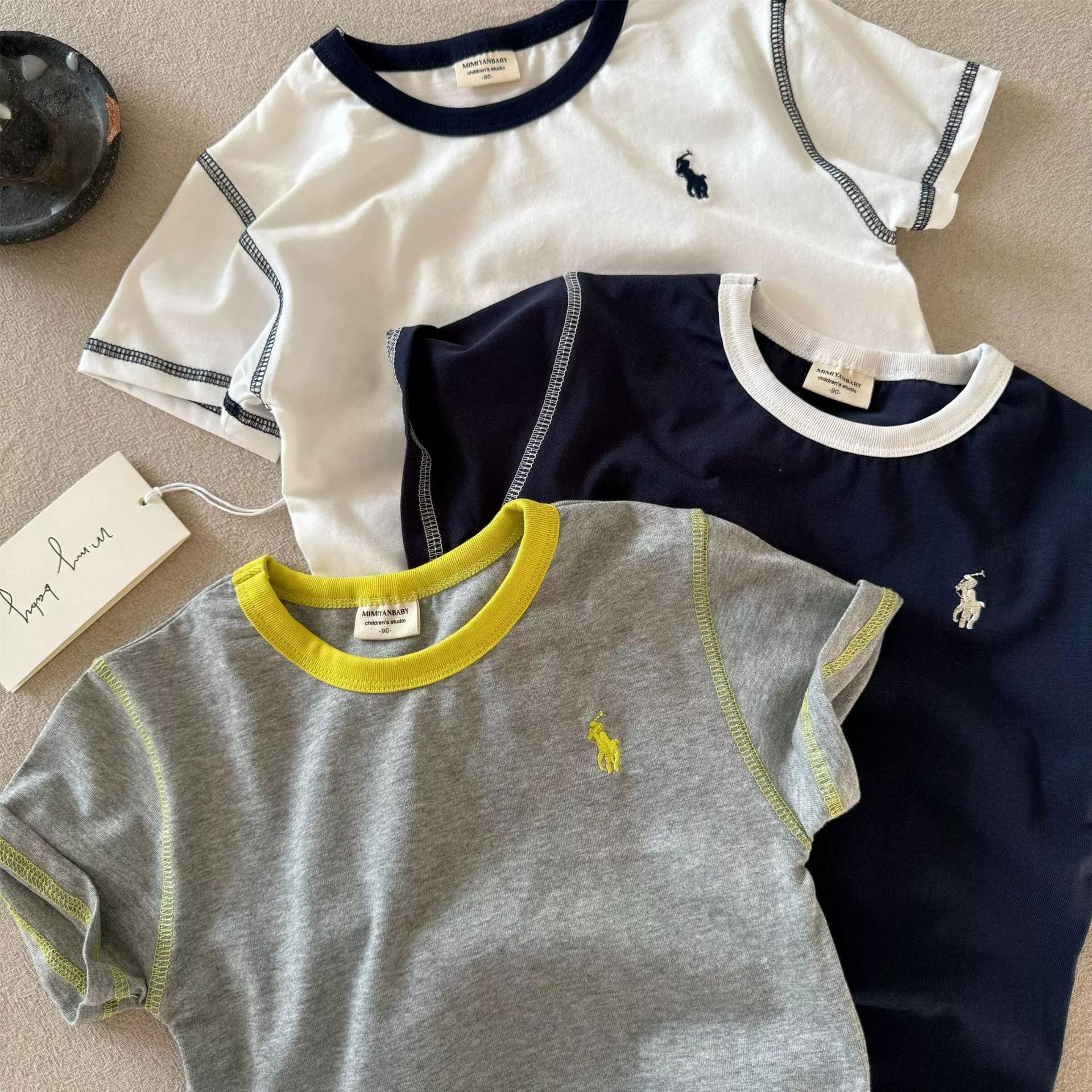 아동용 얇은 반팔 2025 여름 패션 브랜드 조랑말 자수 코튼 베이비 아동용 반팔 탑