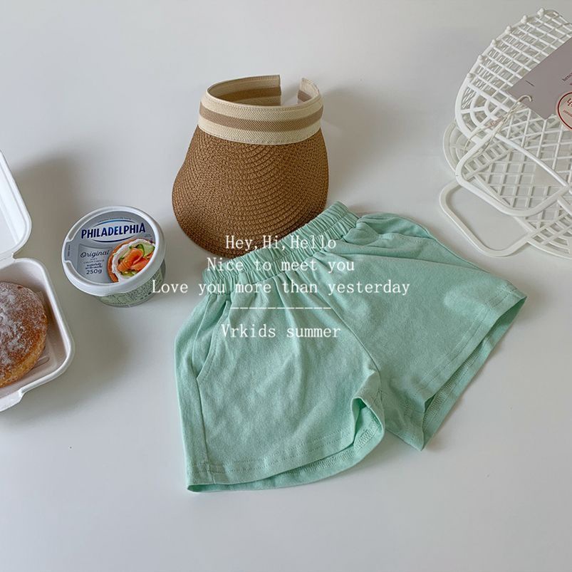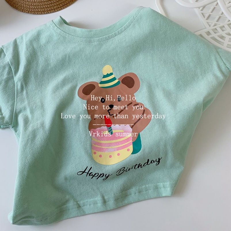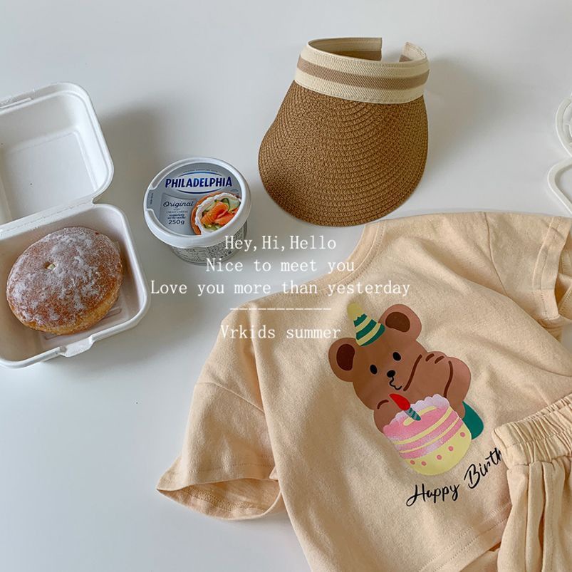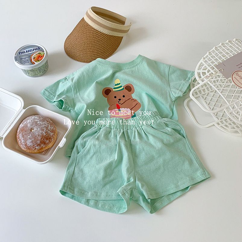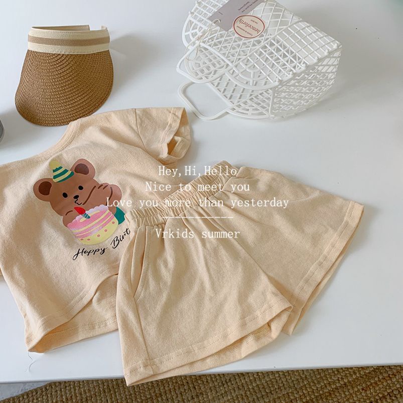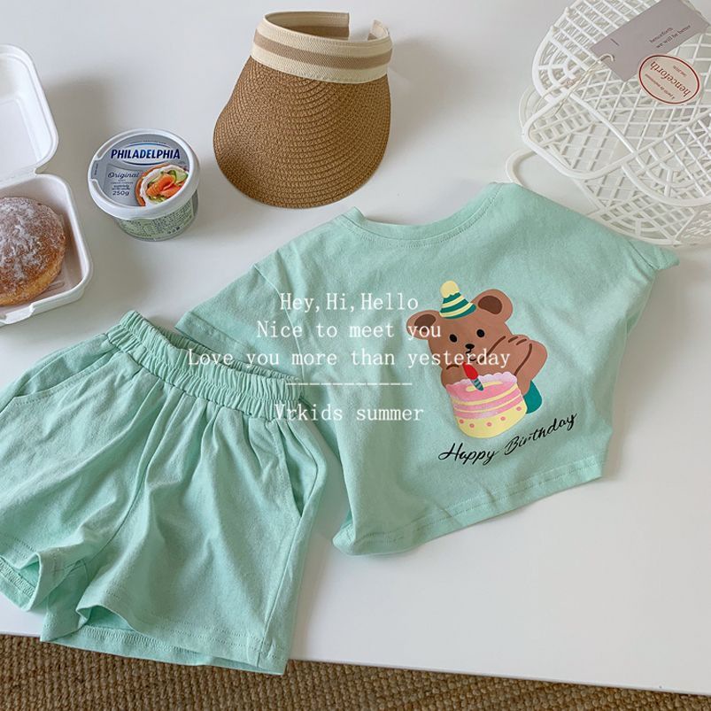여름 소년과 소녀 투피스 세트 아기 서양식 어린이 성격 유행 한국식 만화 인쇄 반팔 티셔츠 반바지스토어 가기