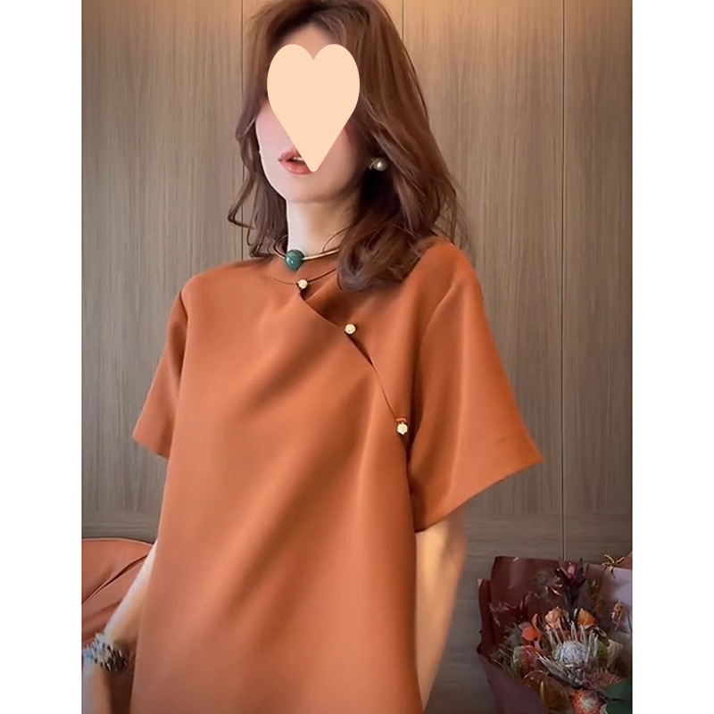 디자인 불규칙한 원피스 여름 새로운 틈새 오렌지 슬란 트 플래켓 디자인 불규칙한 원피스스토어 가기