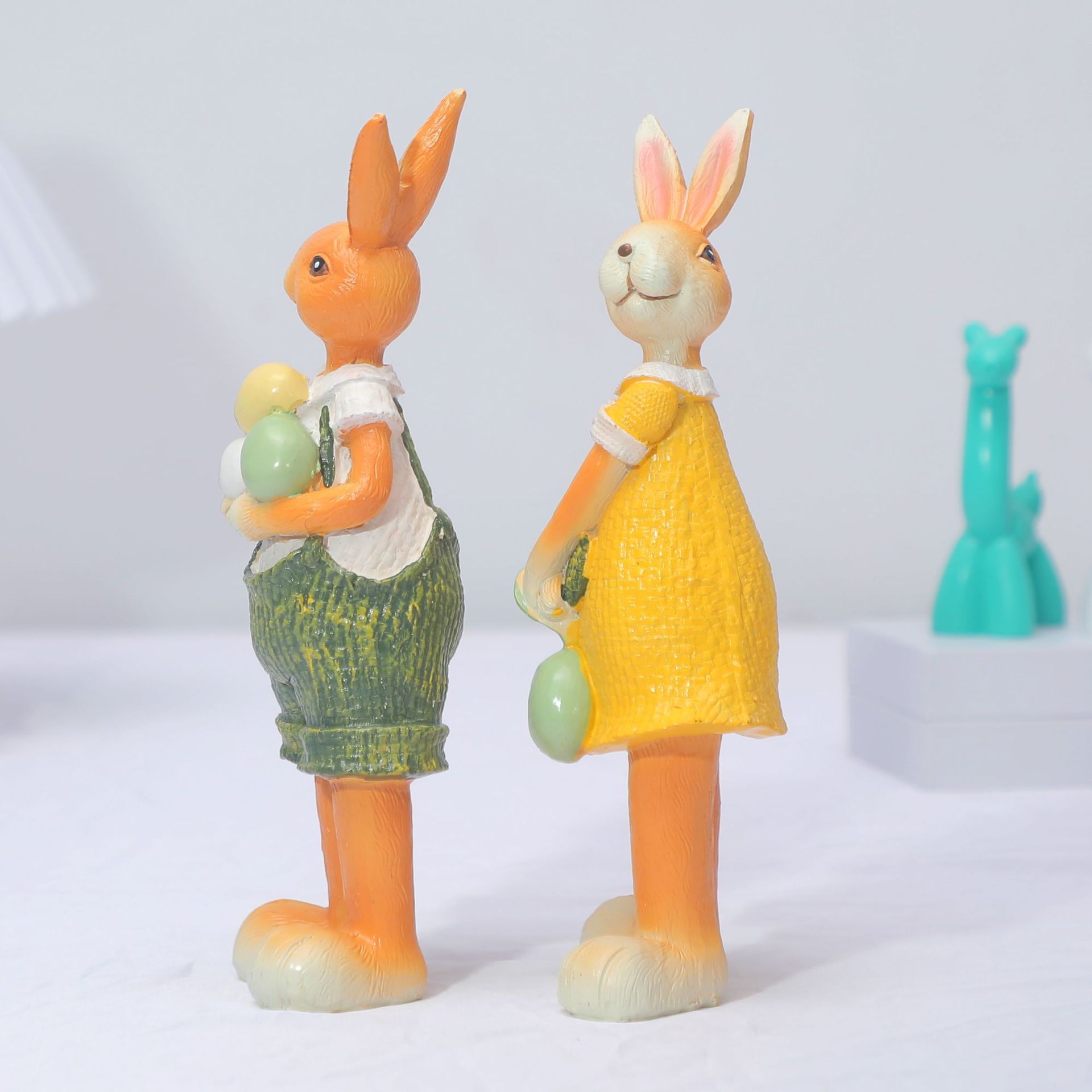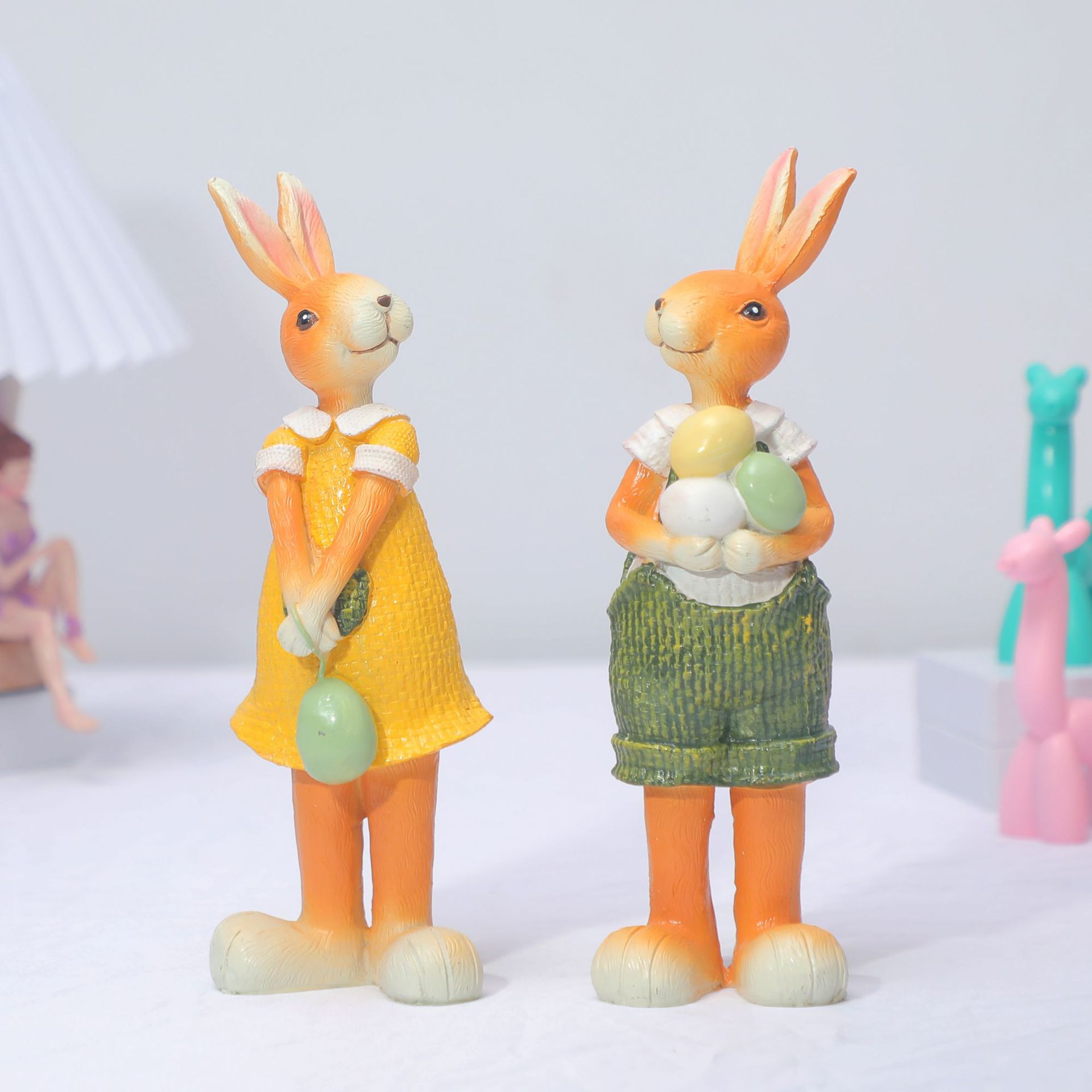 국경 간 부활절 창조적 인 장식품 수지 시뮬레이션 토끼 동물 만화 장식품 부활절 장식 선물