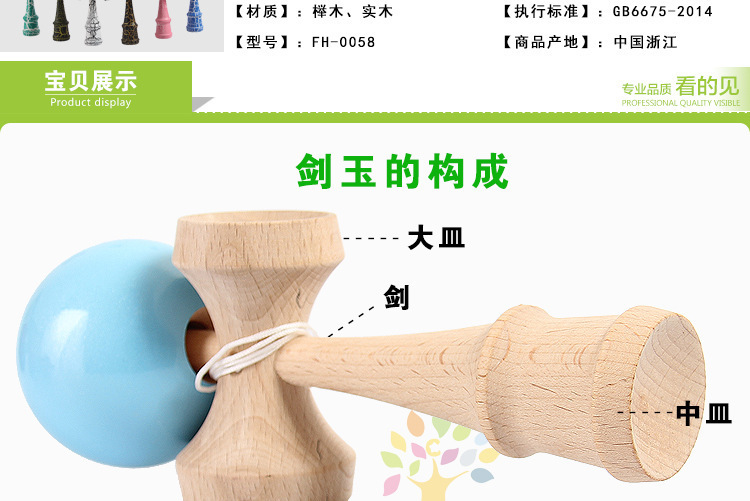 씹는 이모 너도밤 검 옥 야외 스포츠 스킬 볼 나무 칼 공 어린이 성인 전통 레저 장난감 직접 판매스토어 가기