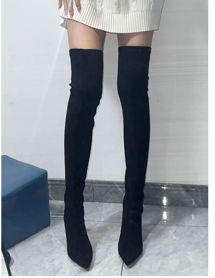 OMG! 아름다운 한국식 하이 부츠! 하이힐 스트레치 스키니 부츠 슬리밍 다리 오버 더 무릎 롱 부츠