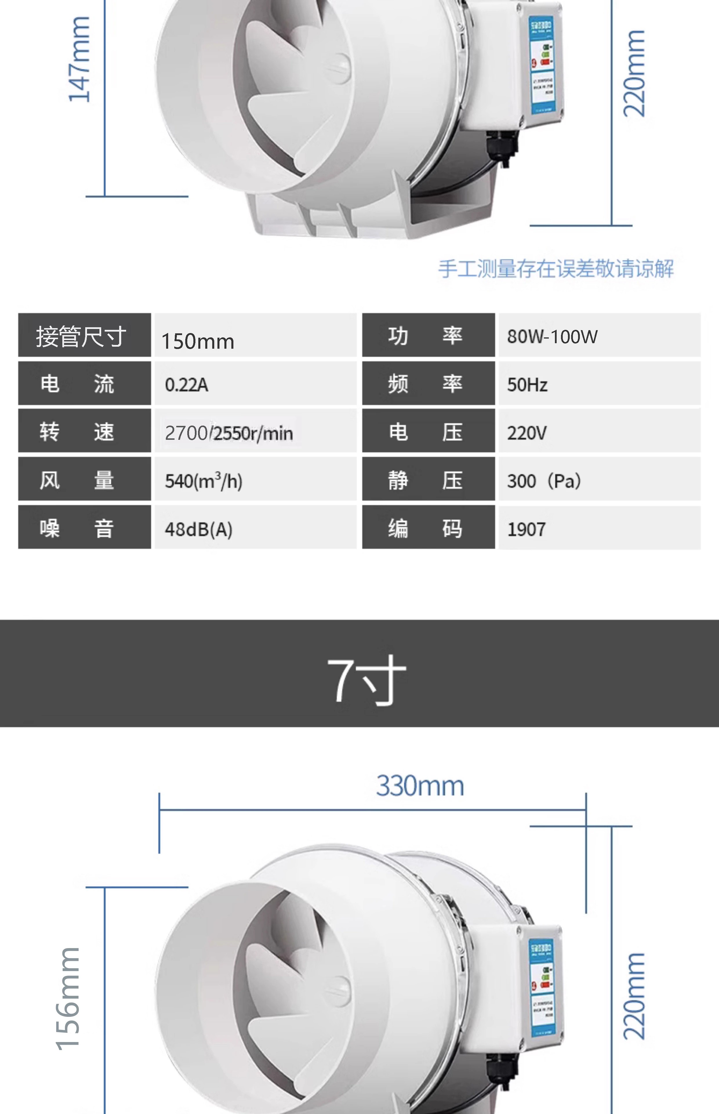 덕트 배기 팬 사일런트 가압 배기 팬 가정용 화장실 환기 주방 레인지 후드 배기 팬