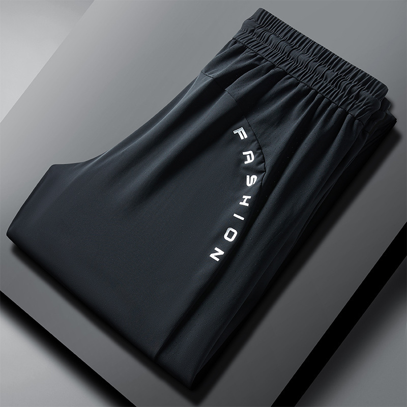 슈퍼 대형 아이스 실크 바지 여름 얇은 남성 통기성 스포츠 바지 캐주얼 바지 바지 빠른 건조 뚱뚱한 남자 스트레치 바지
