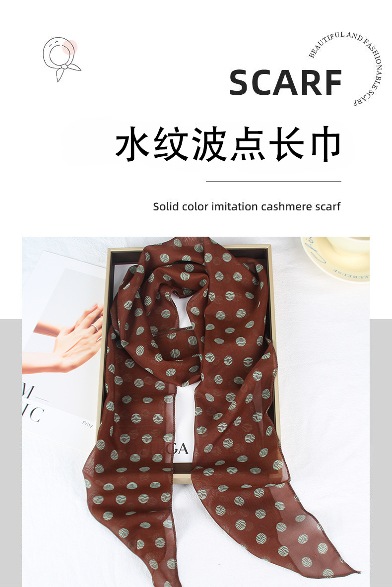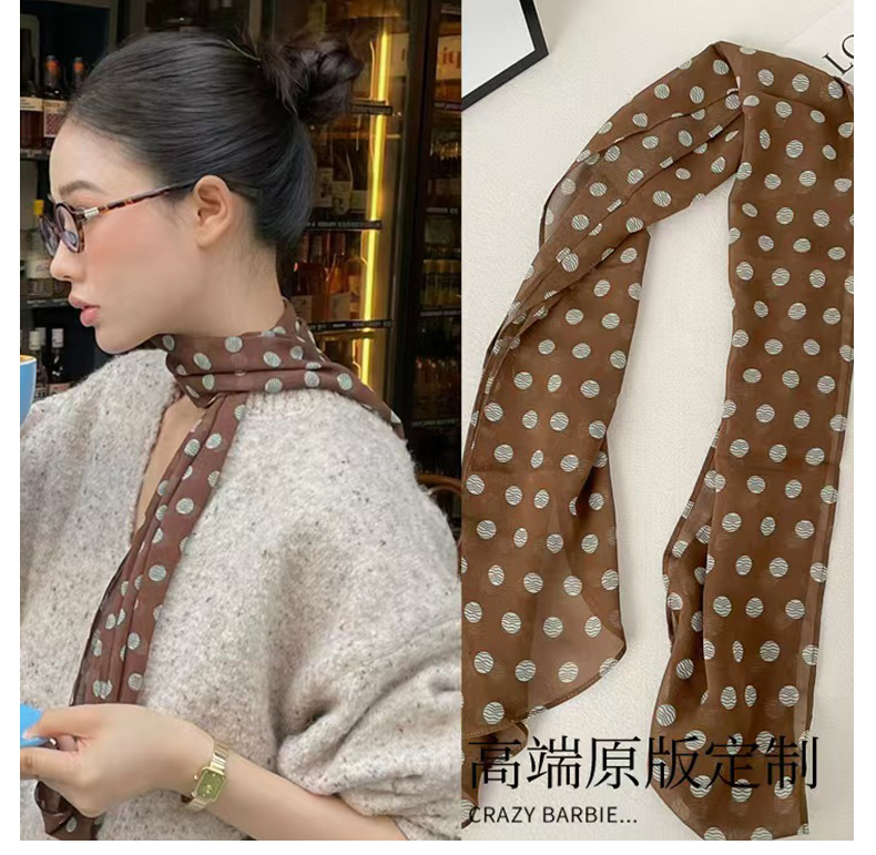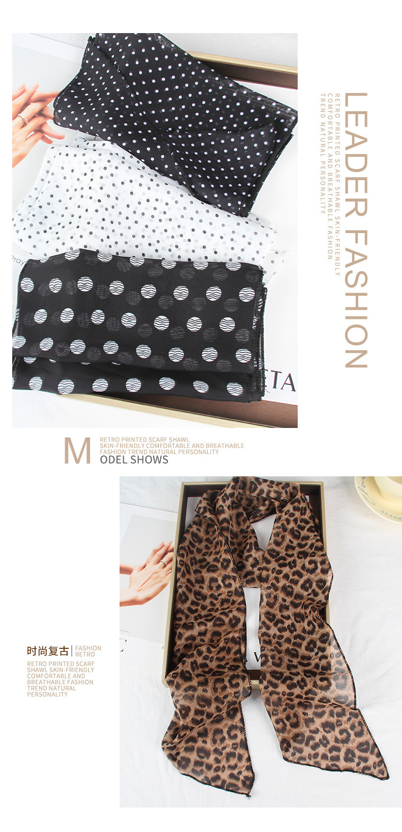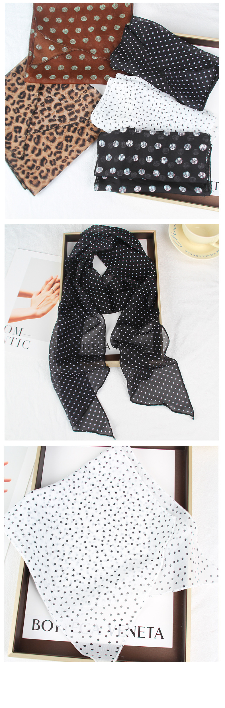 프렌치 스타일 물방울 무늬 실크 스카프 여성용 럭셔리 레오파드 프린트 고급스러운 긴 스카프 다용도 레트로 얇은 스카프 목 보호용