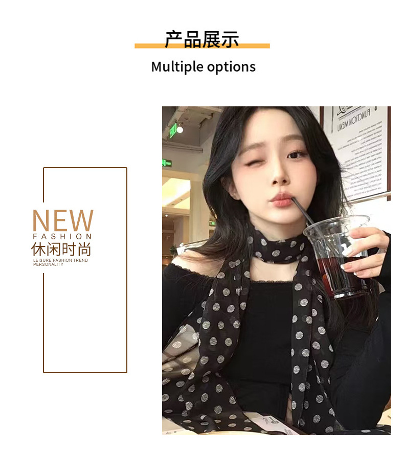 프렌치 스타일 물방울 무늬 실크 스카프 여성용 럭셔리 레오파드 프린트 고급스러운 긴 스카프 다용도 레트로 얇은 스카프 목 보호용스토어 가기