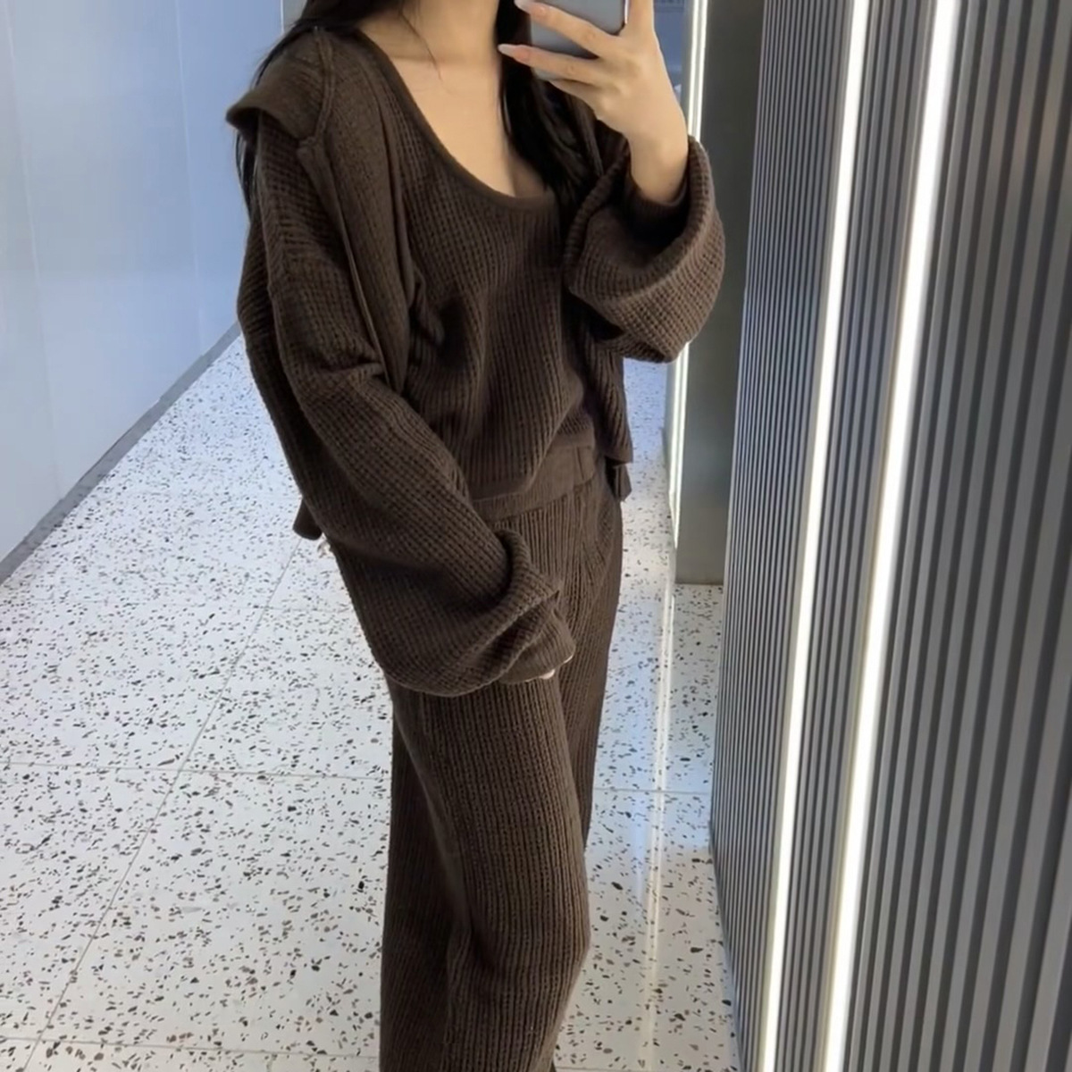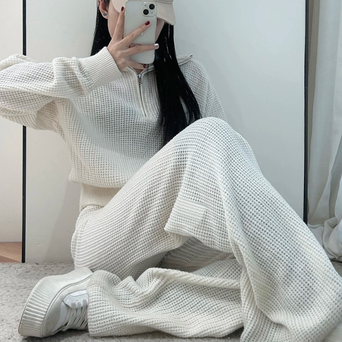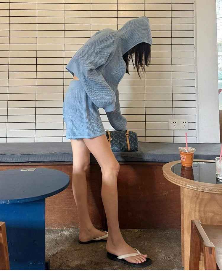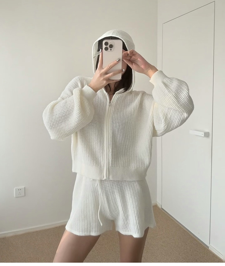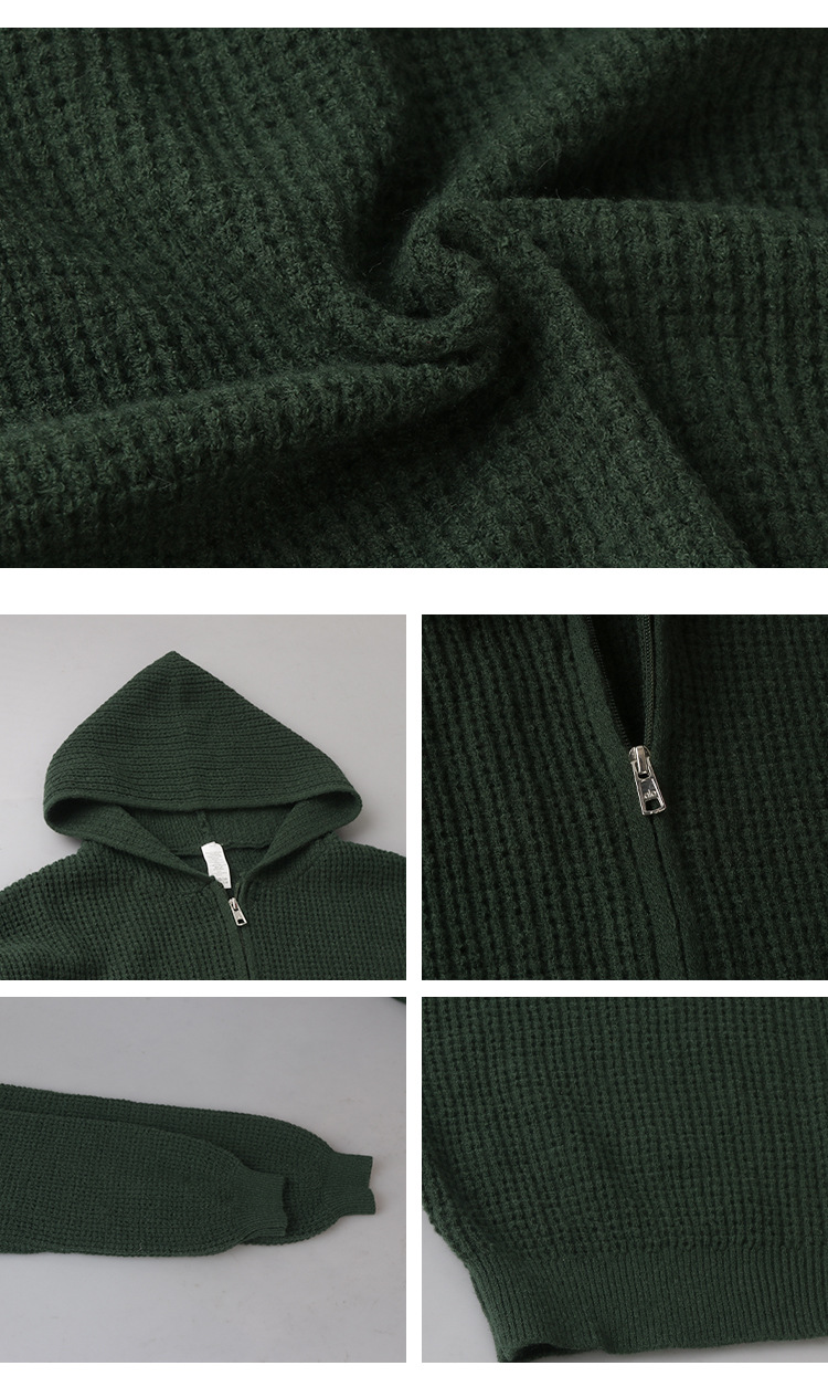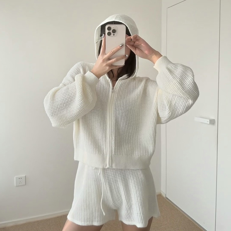 재고 있음 와플 니트 가디건 여성용 풀 지퍼 후드티 레이지 일본 레트로 캐주얼 아우터스토어 가기