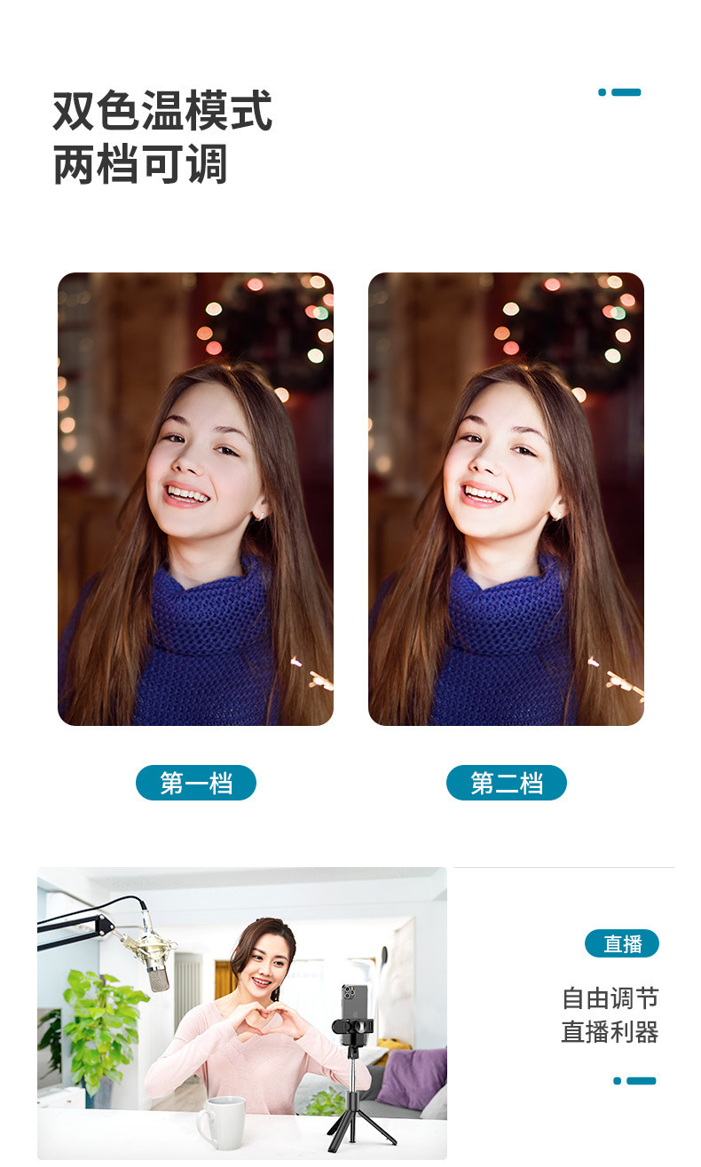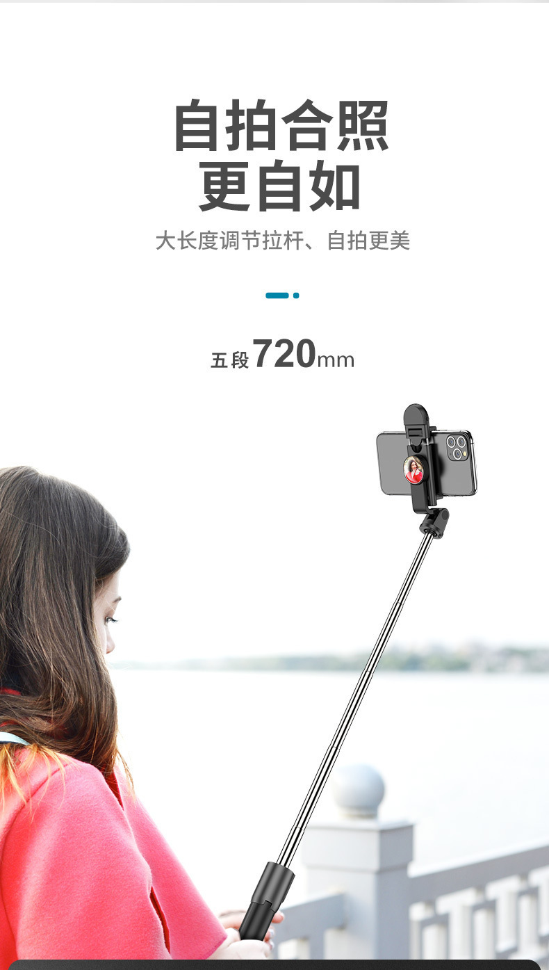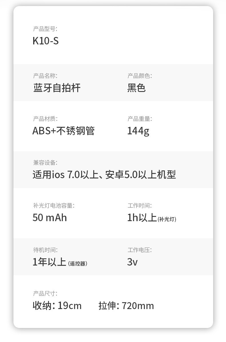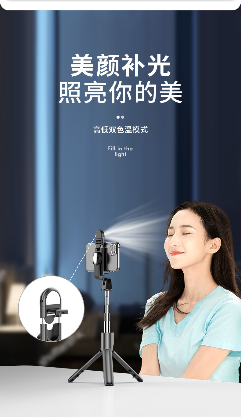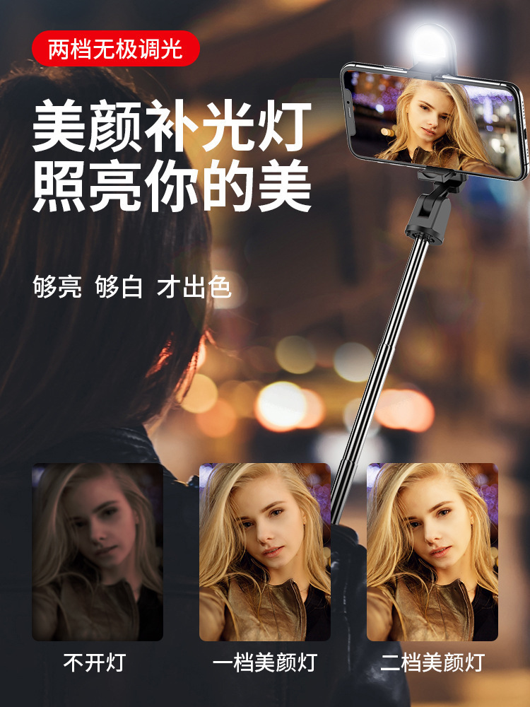 새로운 K10S 휴대 전화 원격 제어 블루투스 셀카 스틱 거울 채우기 빛 휴대용 데스크탑 개폐식 바닥 삼각대