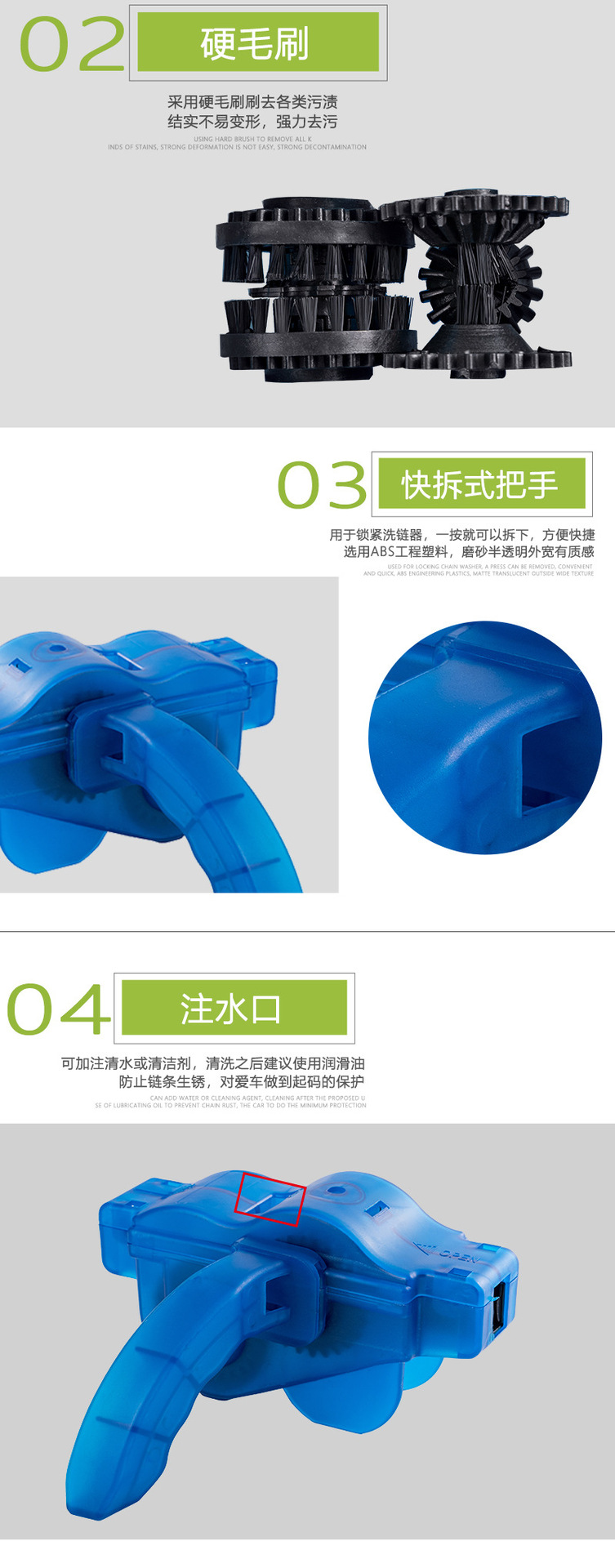 先打开盖子,倒入柴油或者汽油,再把链条放进去,盖上盖子,转动链条,直至链条干净!