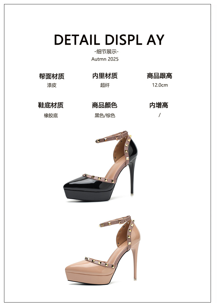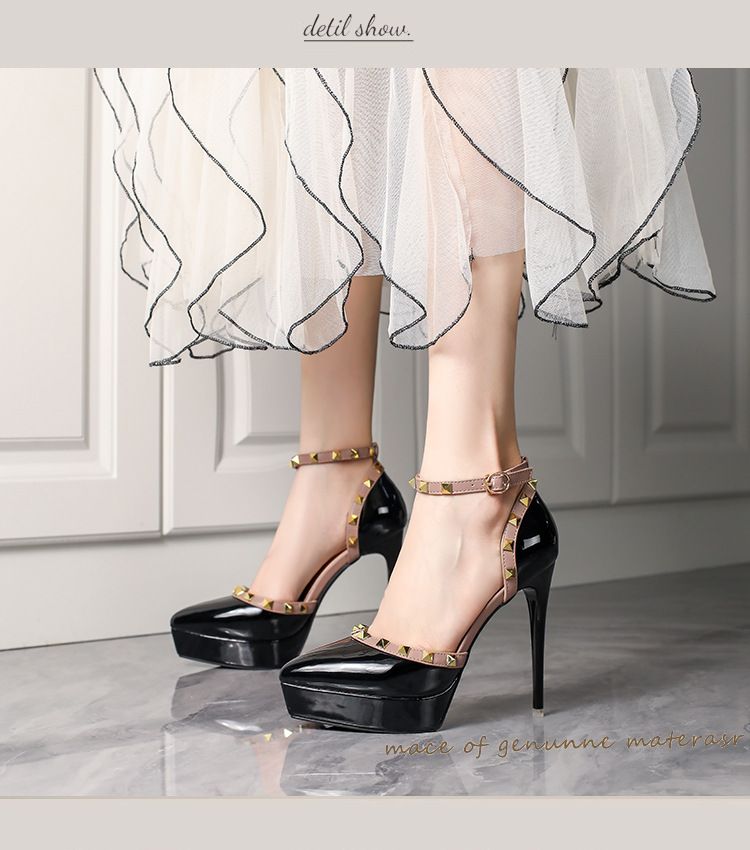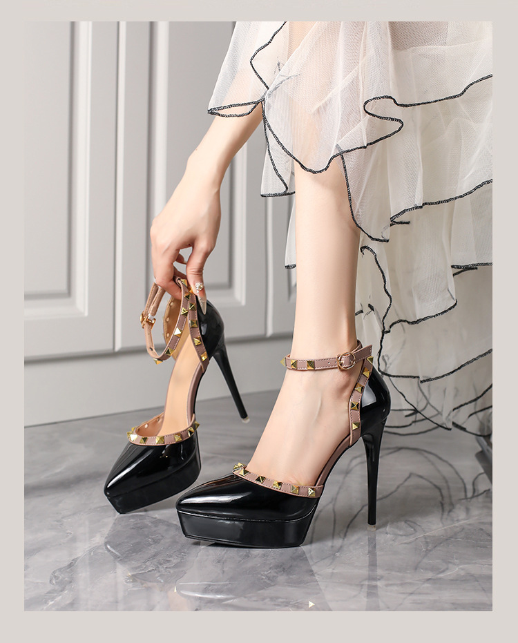 9626-3 하이힐 스틸레토 힐 방수 플랫폼 포인티드 신발 여성 패션 할로우 한 단어 버클 리벳 신발스토어 가기