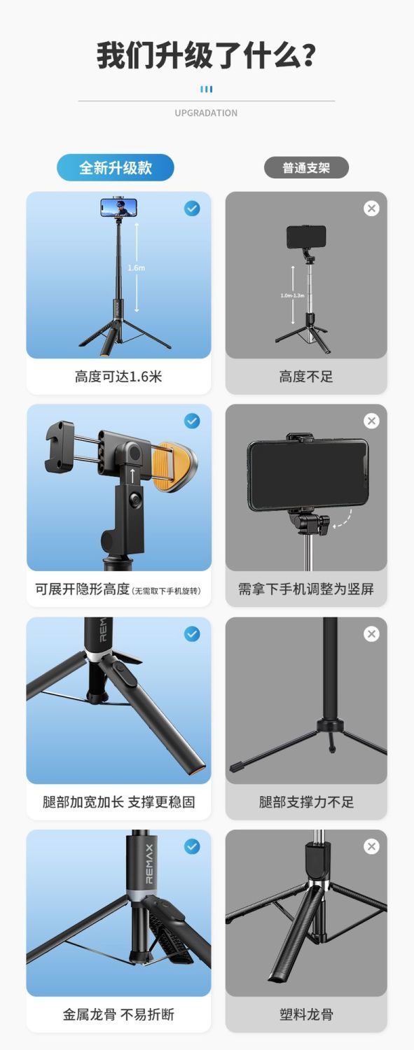 Remax 알루미늄 합금 휴대 전화 셀카 스틱 여행 휴대용 텔레스코픽 로드 블루투스 사진 브래킷 바닥 삼각대스토어 가기