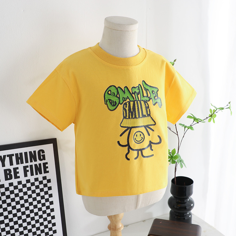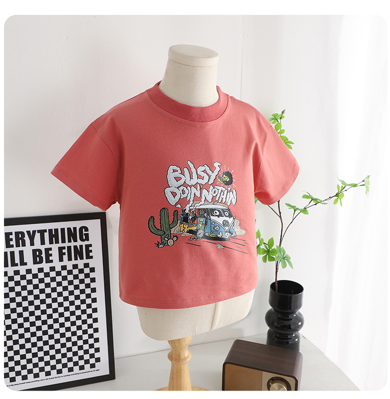 2025 새로운 짧은 소매 탑 애니메이션 아기 탑이 인쇄 된 Ao C 소년과 소녀 티셔츠 라운드 넥 폭발스토어 가기
