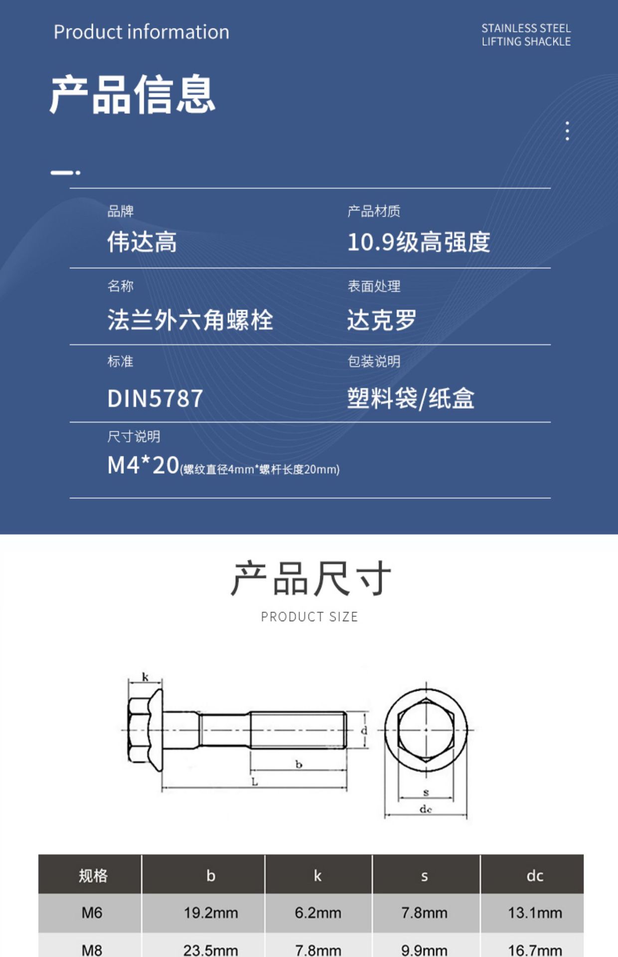 10.9 학년 외부 육각형 플랜지 나사 육각형 패드 볼트 Dacromet 나사 M6M8M10M12M14M16스토어 가기