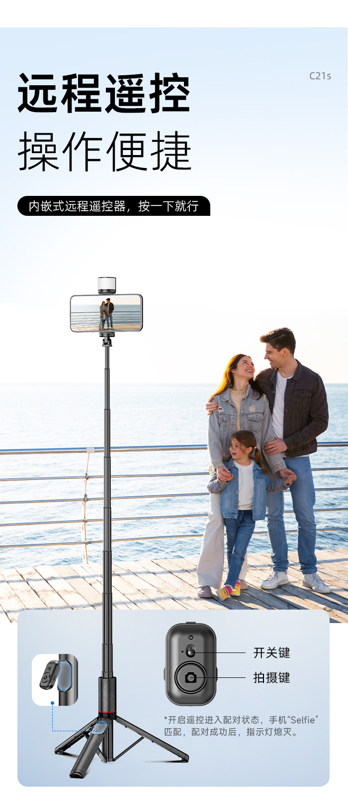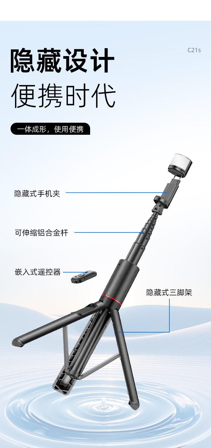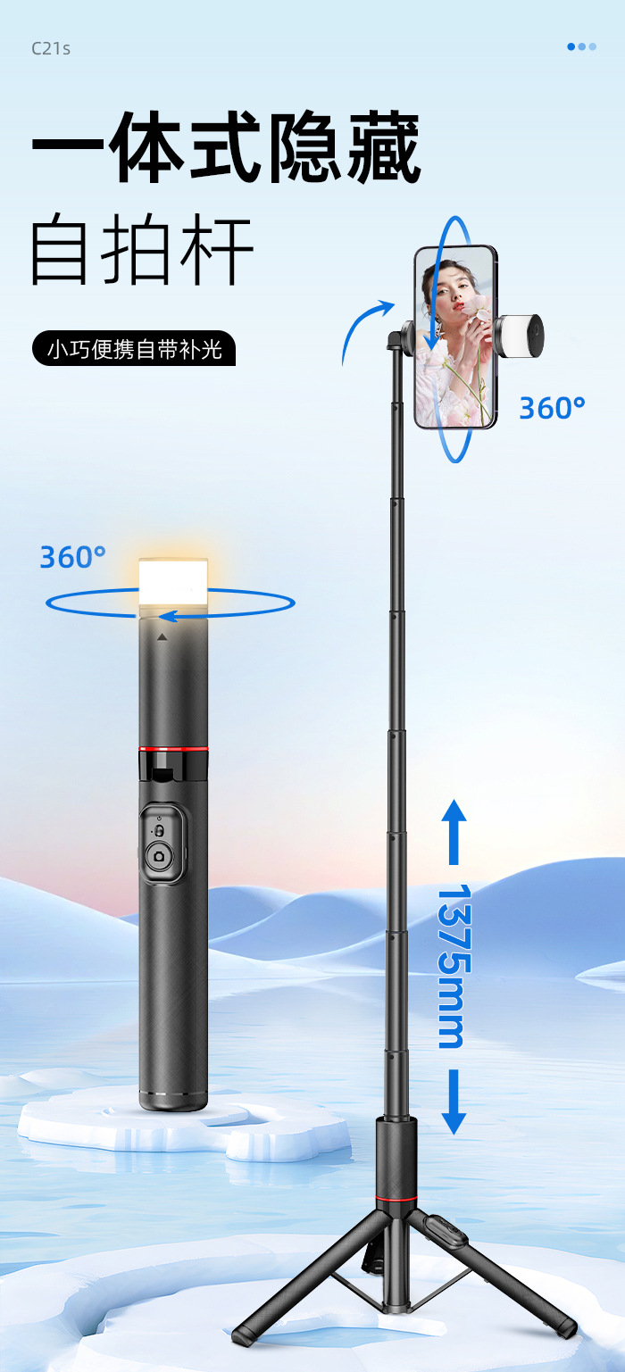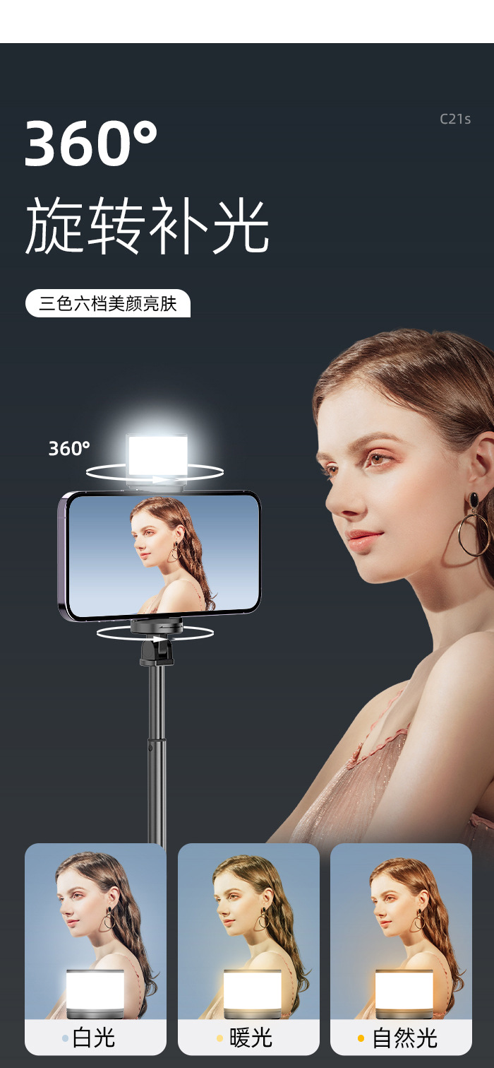 숨겨진 셀카봉 C21S 필 라이트 일체형 플로어 스탠딩 삼각대 여행용 휴대용 휴대용 사진 유물 사용자 정의스토어 가기