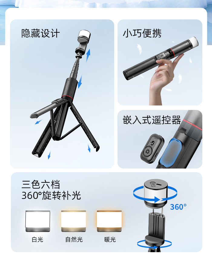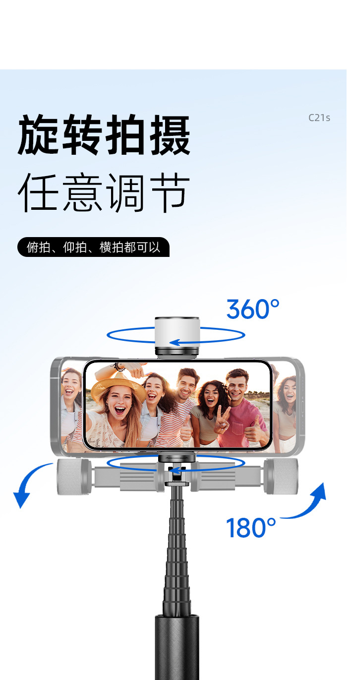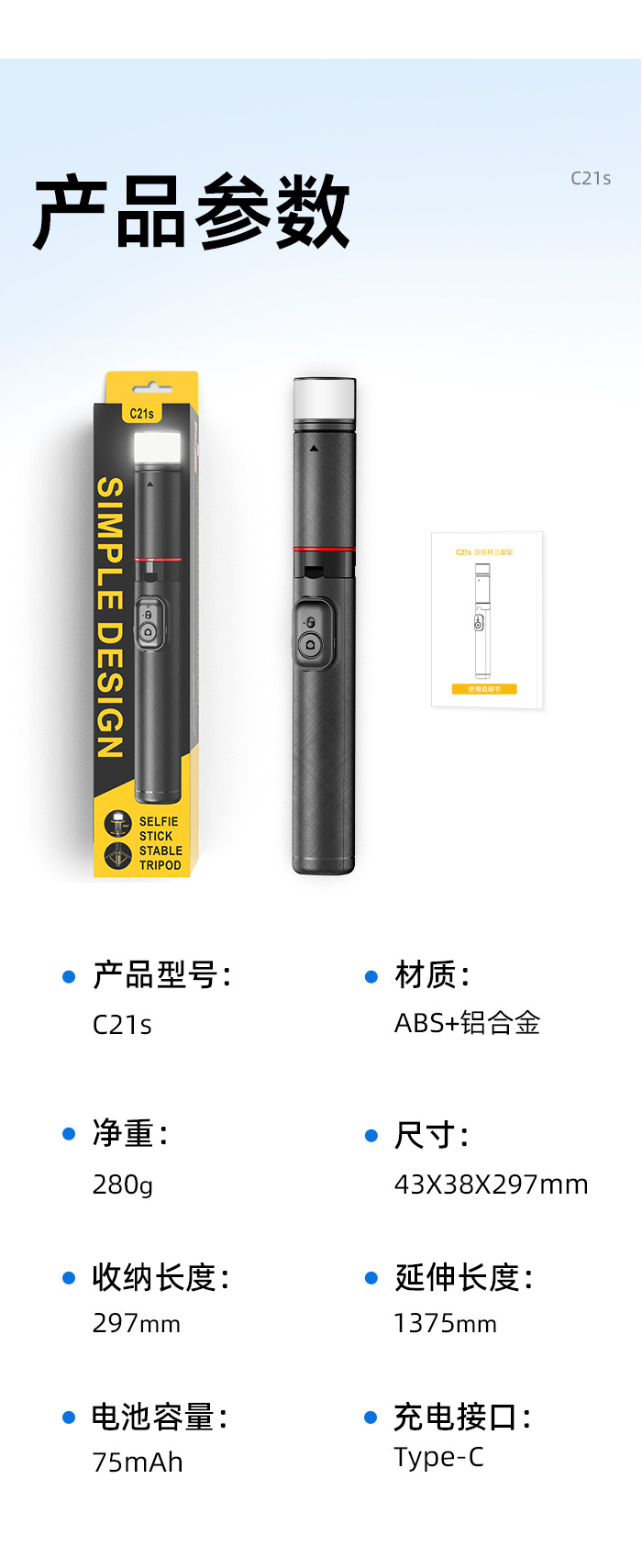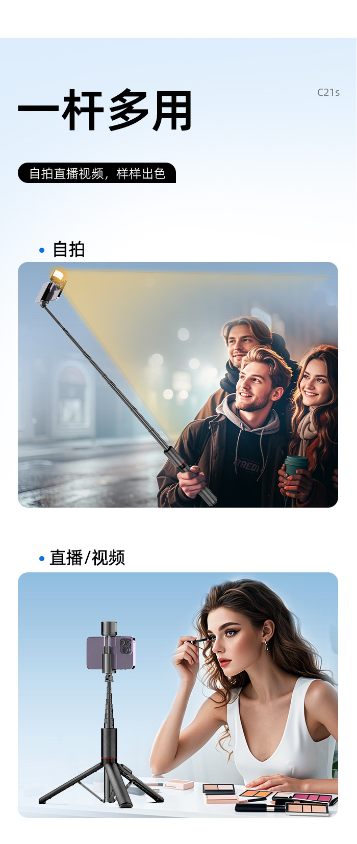 숨겨진 셀카봉 C21S 필 라이트 일체형 플로어 스탠딩 삼각대 여행용 휴대용 휴대용 사진 유물 사용자 정의스토어 가기