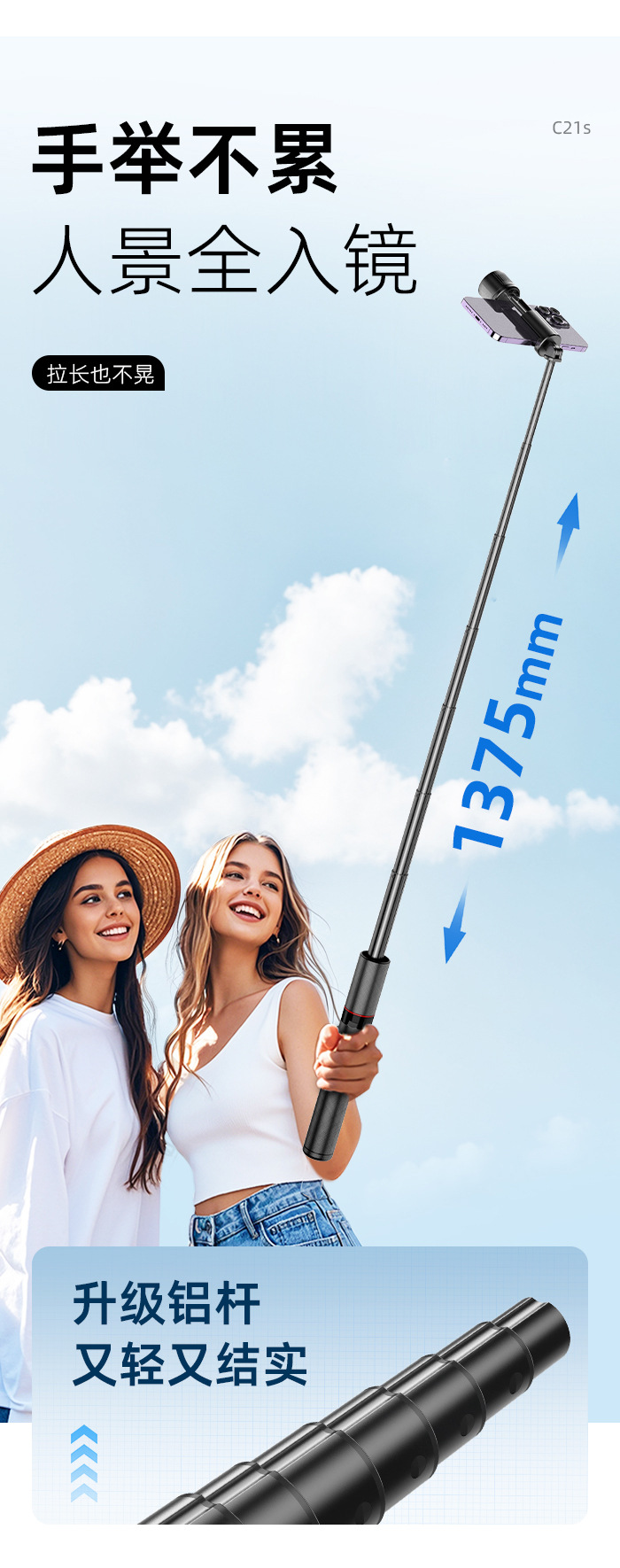 • C21S [블랙] 1.3m 알루미늄 합금 폴*블루투스 리모컨*필라이트*히든 삼각대