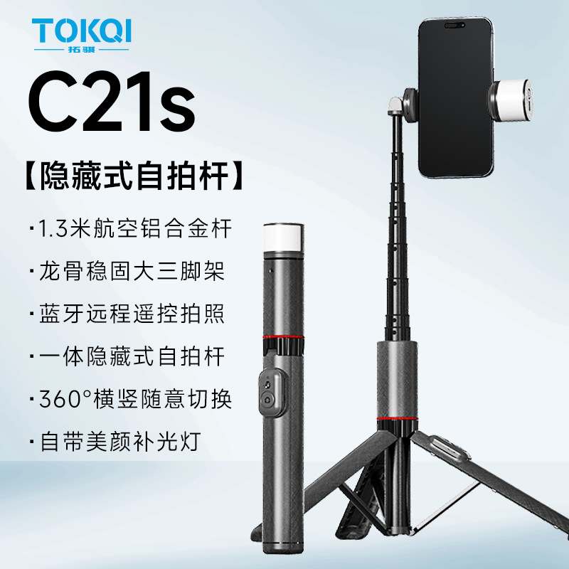 숨겨진 셀카봉 C21S 필 라이트 일체형 플로어 스탠딩 삼각대 여행용 휴대용 휴대용 사진 유물 사용자 정의