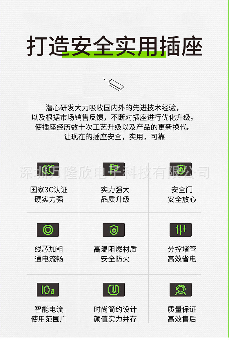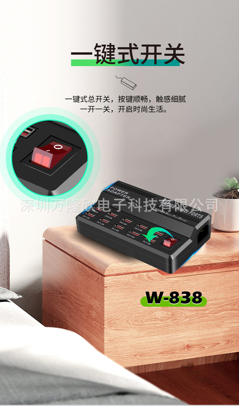 免一家多台手机充电抢插座现象;并配有专用的电源开关,可以关掉输入的高压电源。