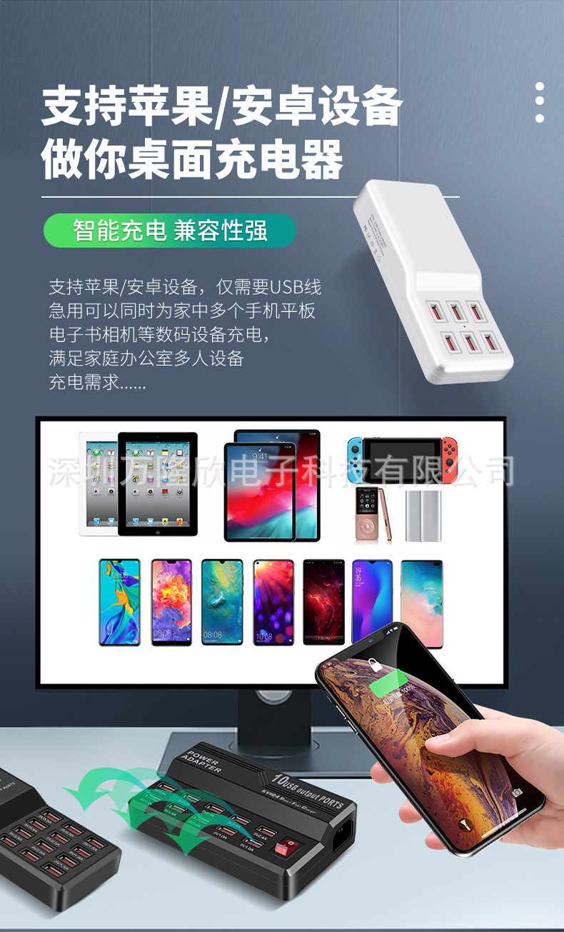 超强兼容性,可为IPAD,IPHONE,SAMSUNG等平板电脑与手机及其它品牌手机充电;用它