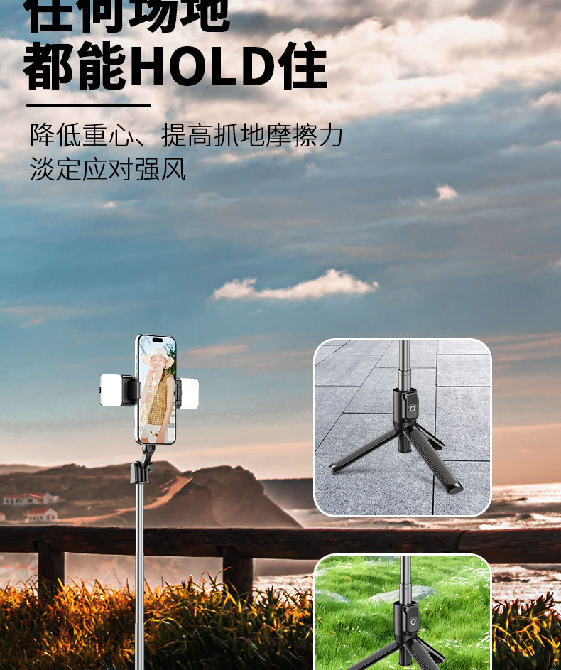 QQM 휴대 전화 블루투스 셀카 스틱 스테인레스 스틸 1.3/1.7/ 1m 개폐식 Douyin 라이브 방송 스탠드 셀카 스틱