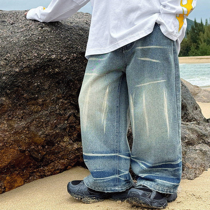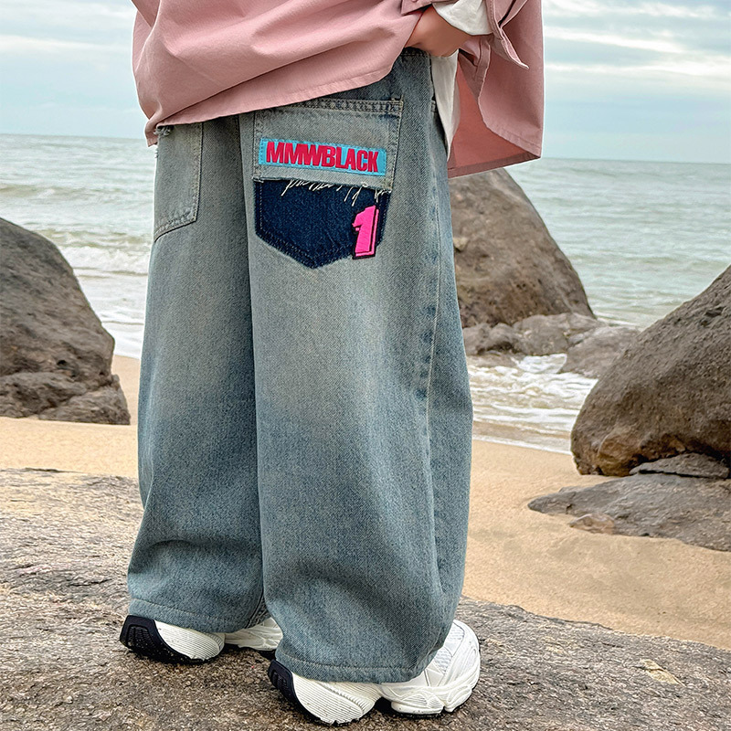 동화의 기억 2025 봄 가을 중대형 남아용 신상 데님 팬츠 어린이 남아용 루즈핏 데님 팬츠 스트레이트 팬츠