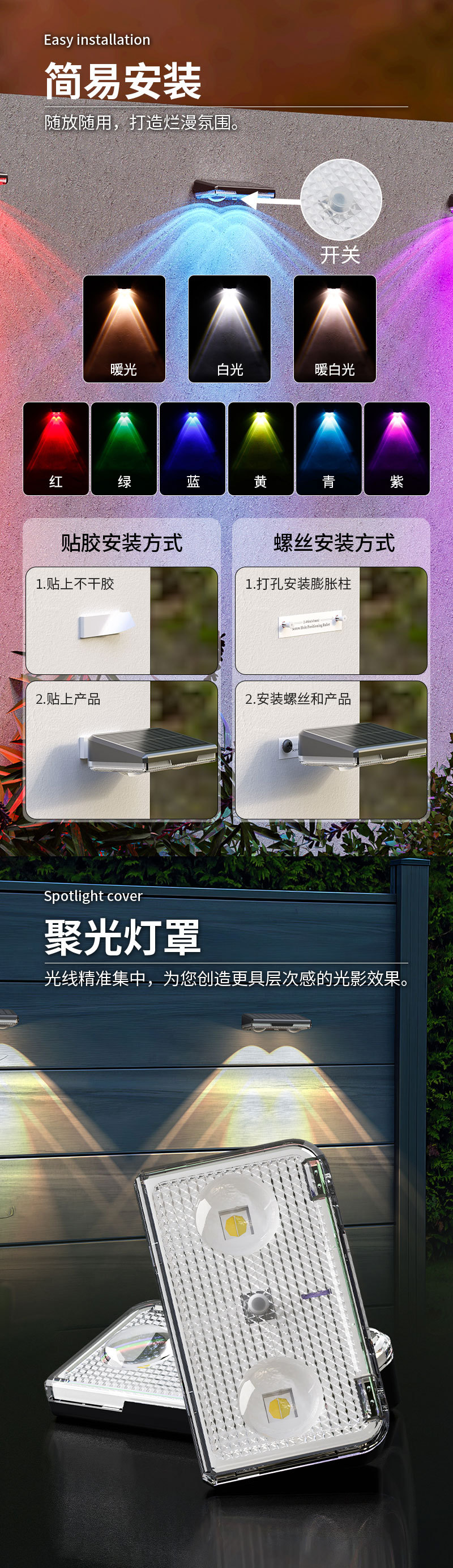 신형 태양광 벽등 야외 방수 정원등 정원 벽등 외부 장식 울타리 난간 벽걸이등 공장